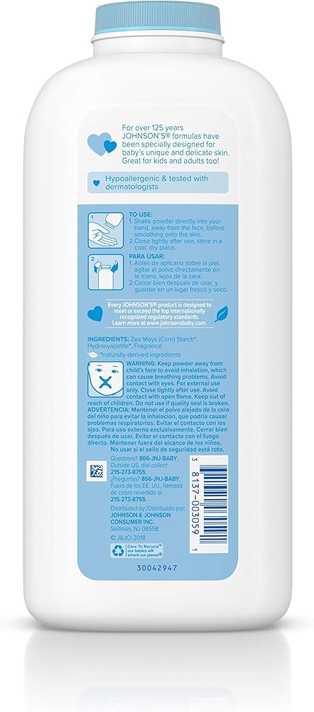• For over 125 years, Johnson's formulas have been specifically designed for baby's delicate skin. To use, shake baby powder directly into your hand, away from the face, before smoothing onto the skin