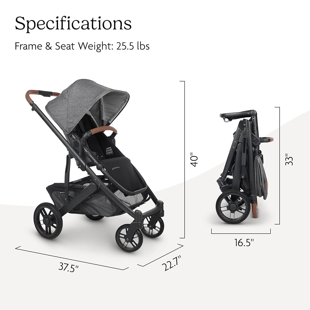 The CRUZ is the choice for parents looking for a full size stroller in a streamline design that complements their lifestyle. The next generation CRUZ offers a greater level of strolling performance and comfort while maintaining its promise of being compact without compromise. Performance Travel System compatible with MESA Infant Car Seat – direct attachment, no adapters necessary Full-size forward and parent-facing Toddler Seat New Dual Action Rear Suspension Adjustable, zip out UPF 50+ sunshade with more sun protection Bigger toddler seat with an increased back height, leg rest, and deeper footrest No rethread harness can be tightened or loosened in a singular motion Larger wheels for a smoother ride User-friendly wheel lock with visual lock indicator One-handed, multi-position recline One-button telescoping handlebar One-hand release, pivoting bumper bar for easy loading 100% full-grain leather accents Extra-large, easy-access basket with 30 lbs. weight limit Combines aluminum with magnesium for optimal lightweight, durable performance Smaller, one-step fold with or without Toddler Seat attached. Stands independently when folded All weather protection with included Toddler Seat Rain Shield and Bug Shield Suitable from birth with the Infant SnugSeat or Bassinet accessory