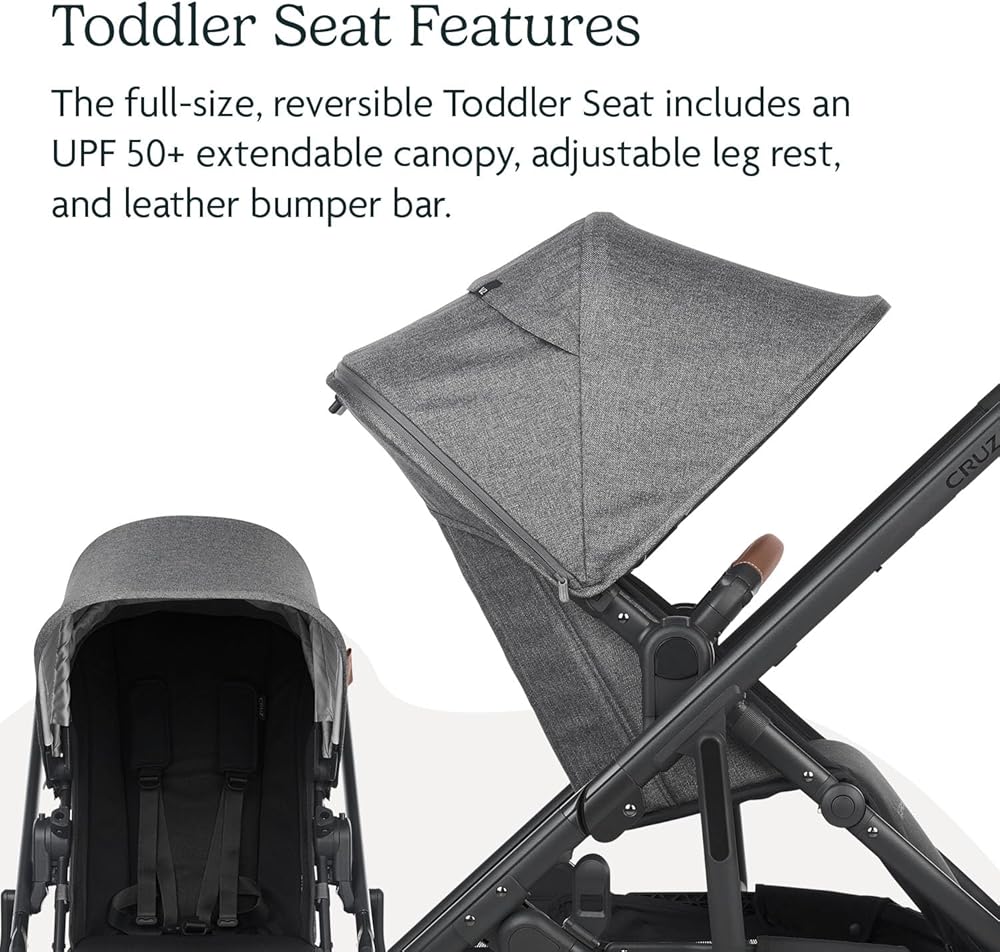 ONE-HANDED RECLINE: The multi-position recline on the Toddler Seat allows your child to lie comfortably for naps or sit upright to take in the sights, offering the flexibility your busy toddler needs.