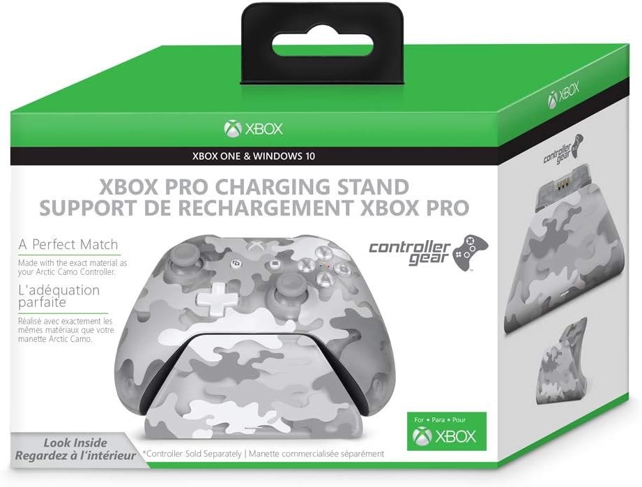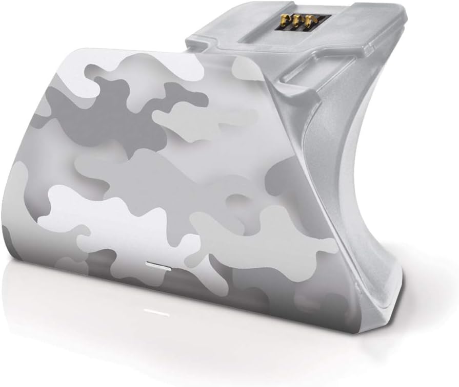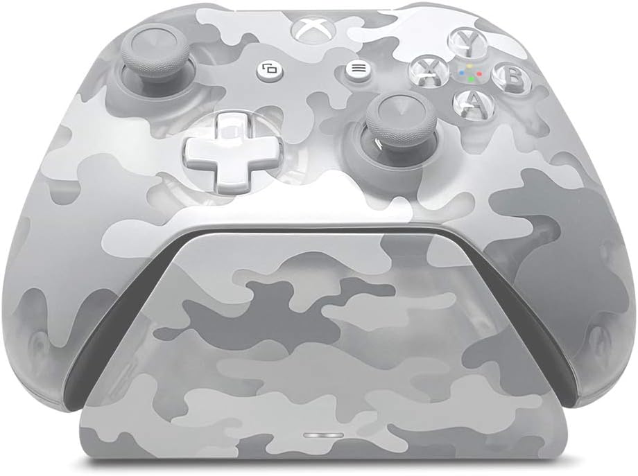 Expand your collection accessorize in style. Complete your gaming set up and Dock your Controller on your matching charging Stand. Combining tactical white and gray color schemes with frosted transparent Tech, this Arctic Camo Xbox Pro charging Stand is designed to be a perfect match with the Arctic Camo Xbox One Controller. This Xbox Pro charging Stand is a Premium, high performance and seamless charging experience for gamers. Compatible with Xbox One X, Xbox One S, Xbox One, and Xbox Elite Controllers. Not compatible with the Xbox Elite series 2