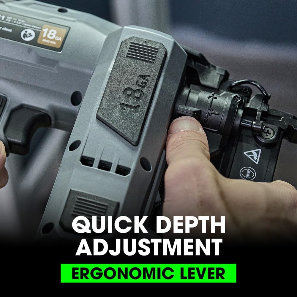 QUICK DEPTH ADJUSTMENT LEVER - Ergonomic lever easily sets ideal nailing depth