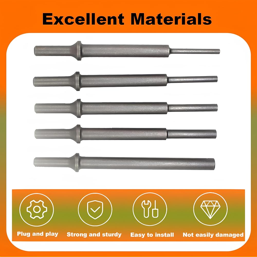 مجموعة انجراف مطرقة هوائية قياسية طويلة جدًا 7 بوصة (177 مم) 401، لقم ثقب 3/16 بوصة إلى 1/2 بوصة متوافقة مع ATD-5736 لإزالة البراغي المتآكلة أو الدبابيس الطويلة (5 قطع)