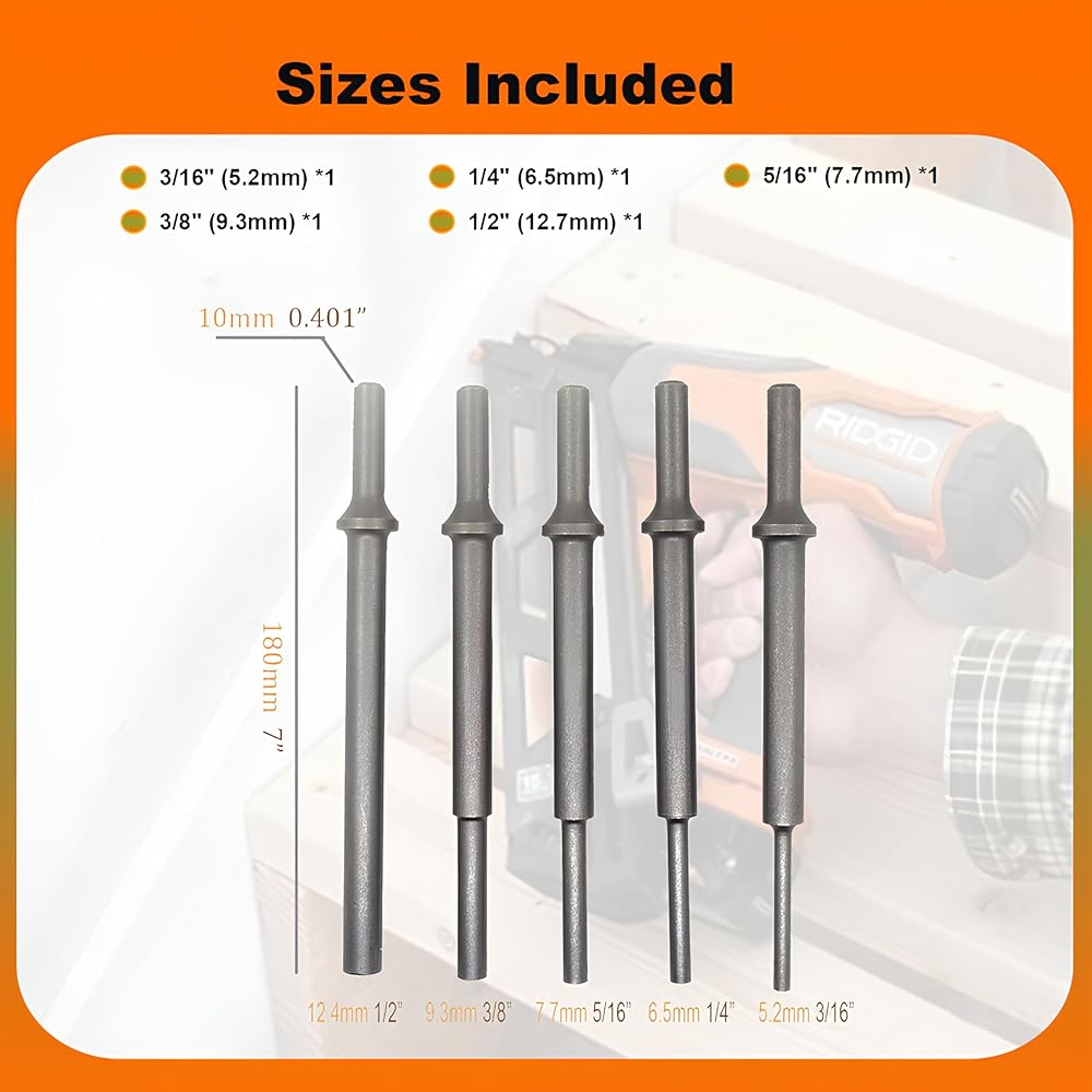 - مجموعة مطرقة هوائية طويلة بطول 7 بوصات (177 ملم).