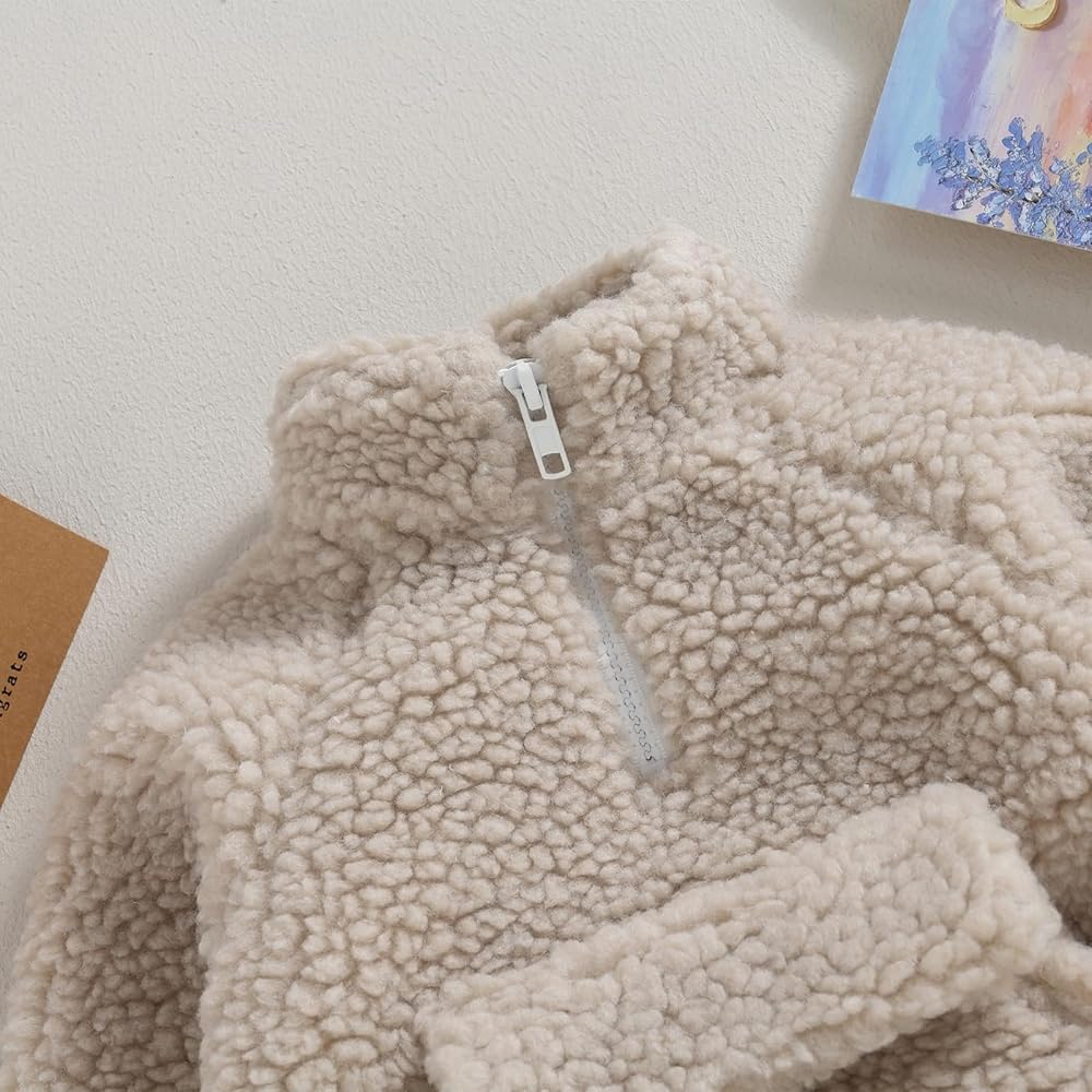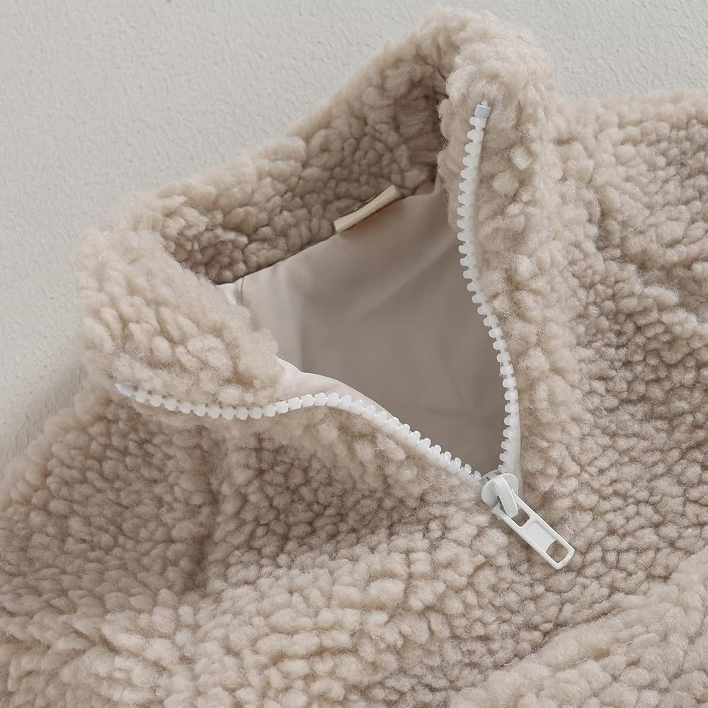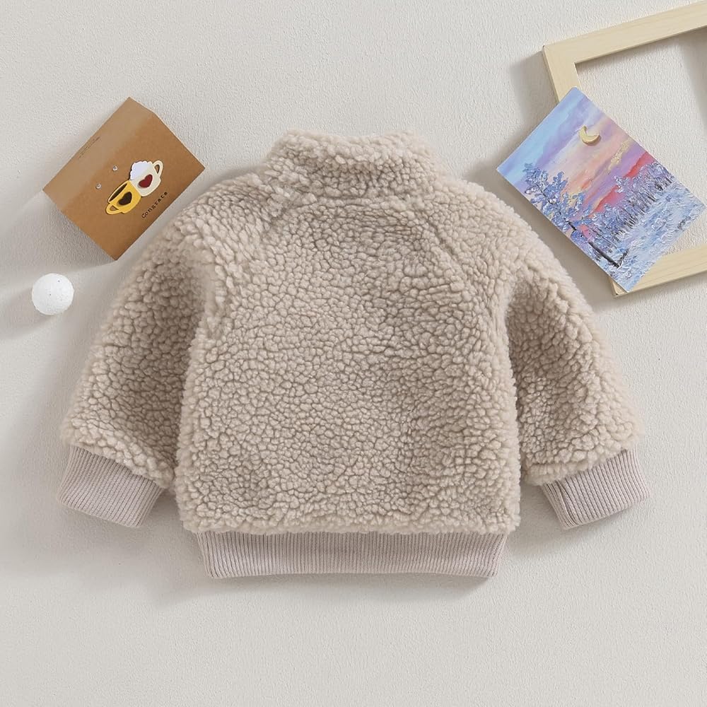 • 【Material】: 🌈Newborn Toddler baby toddler sherpa jacket,made of 100%Polyester material,soft and skin-friendly,breathable and sweat-absorbing,warm and cozy sherpa lined jacket,thick fleece fabric keeps your little boys girls warm in the cold autumn and winter.