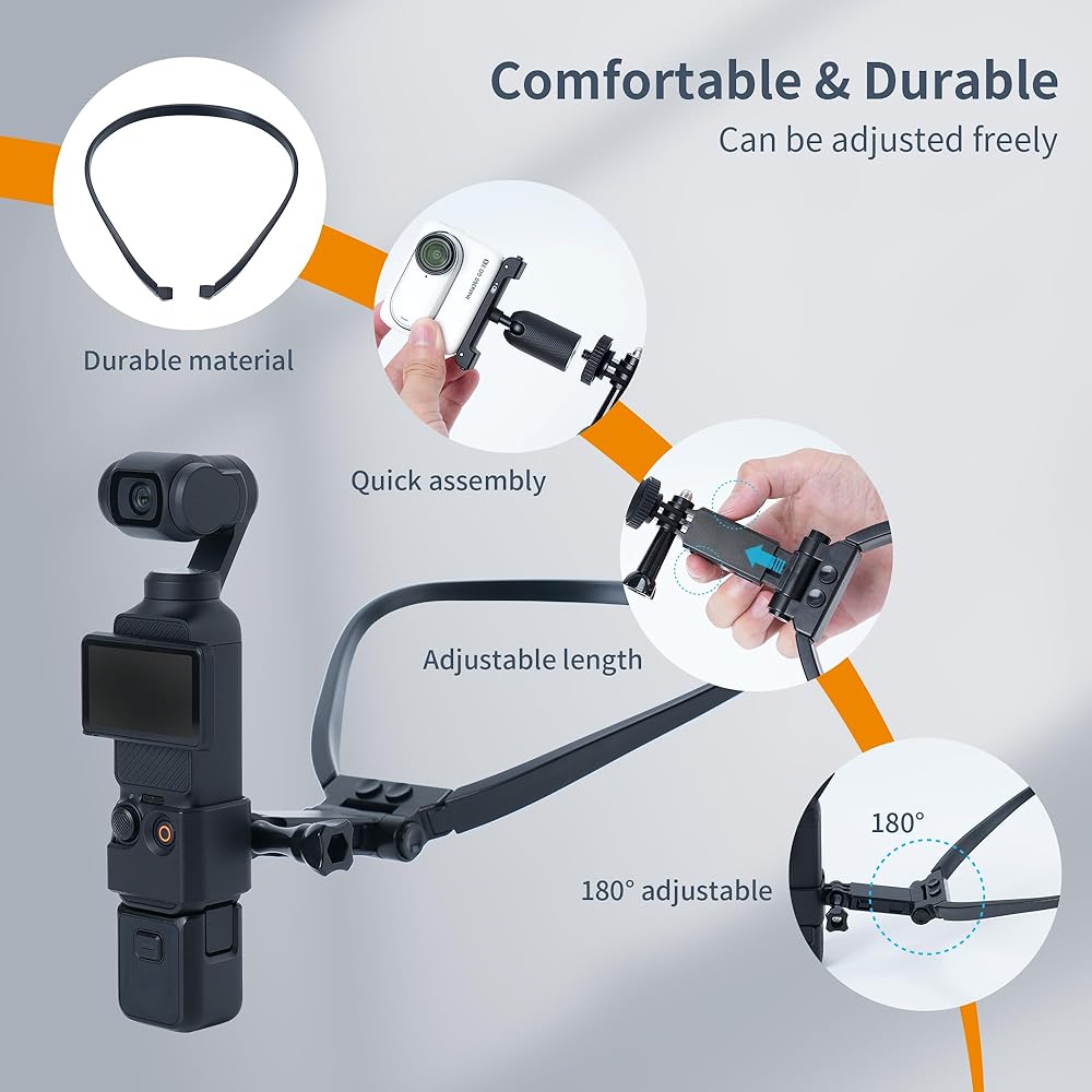 Designed for DJI Osmo Pocket 3: This neck-mounted bracket is designed for DJI Osmo Pocket 3 series and is also compatible with Instar 360 Go 3S cameras, ensuring a stable and convenient shooting experience. Whether it is outdoor sports, travel or daily shooting, it can be easily handled