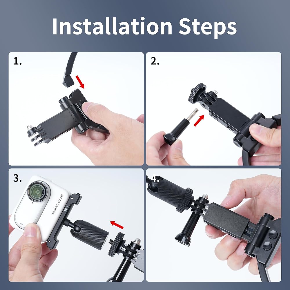 Easy Installation and Removal: The connection between the bracket and the handle is fixed with screws, which is easy to install and remove quickly. At the same time, there is a dedicated interface at the bottom of the bracket, which can be perfectly docked with Osmo Pocket 3 and Instar 360 Go 3S cameras without the need for additional adapters