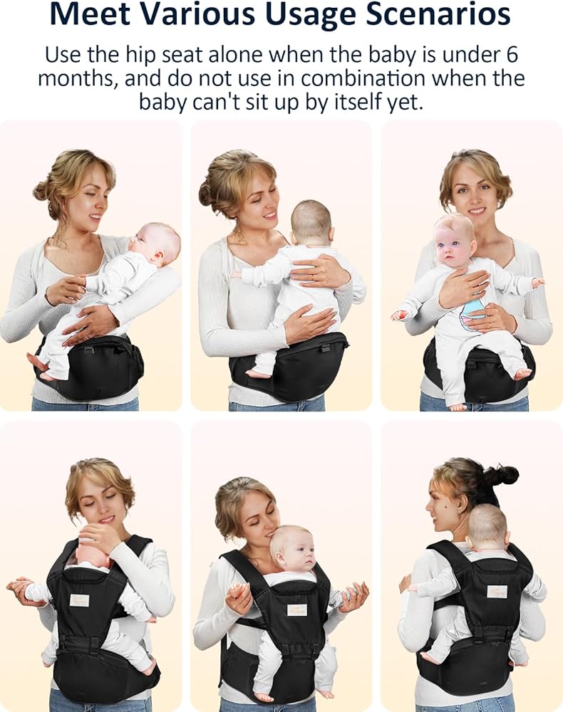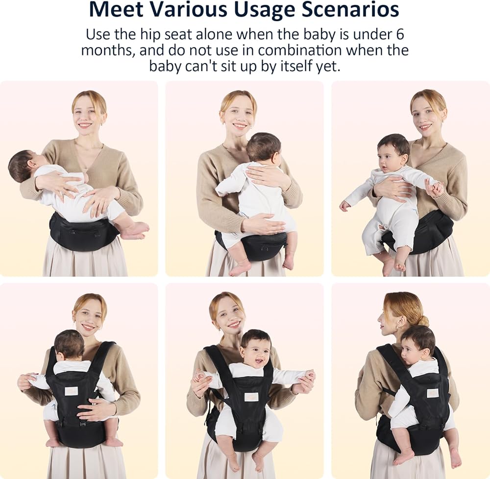 【حاملة الأطفال الصغار 6 في 1】توجد 6 طرق حمل لتختار منها وفقًا لحالة نمو طفلك ومشهده، يرجى الرجوع إلى الصورة لمعرفة الاستخدام والعمر المحددين.