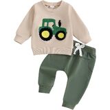 ملابس VISGOGO للأطفال الأولاد والبنات ملابس فاصوليا صغيرة/جرار مطرزة بحروف وأكمام طويلة وسراويل من النوع الثقيل