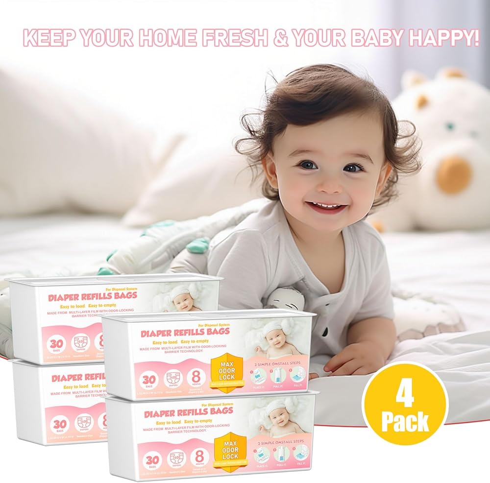 Ideal Solution: Each diaper pail refill cartridge contains 4 diaper pail refills (120 Bags). These convenient refill bags for baby, adult, elderly Senior diaper needs and even for your lovely pets. It is the easiest way to maintain a fresh, dry, and smell-free environment.