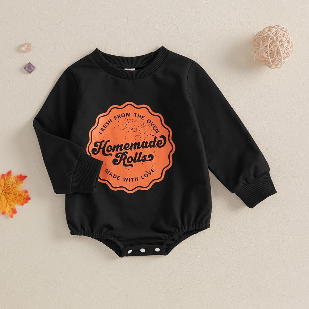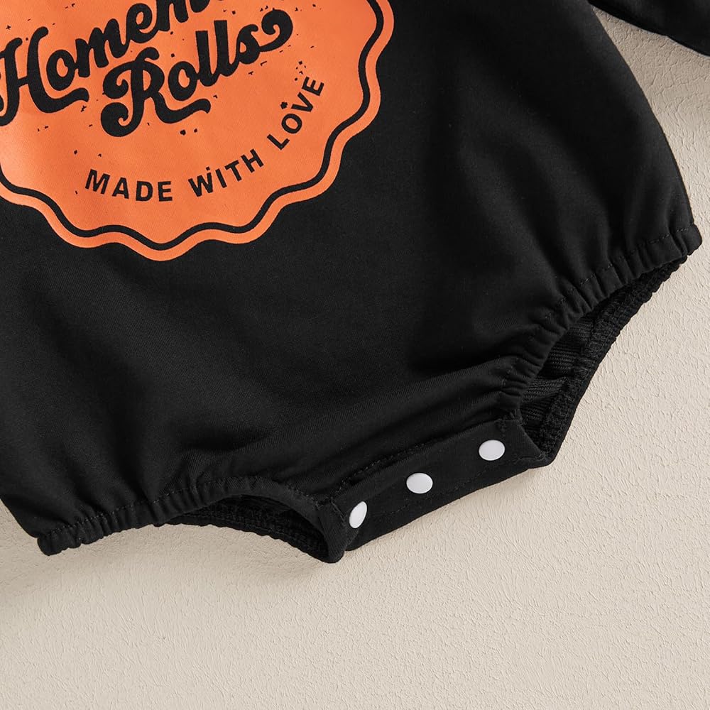【العبوة】1 × بدلة قطعة واحدة مصنوعة منزليًا. لفات طازجة من الفرن مصنوعة منزليًا مصنوعة من رومبير فقاعات الحب، أول زي طفل رضيع لعيد الشكر، أول زي طفلة لعيد الشكر. رائعتين ومريحة للغاية! كانت مثالية لعيد الشكر!