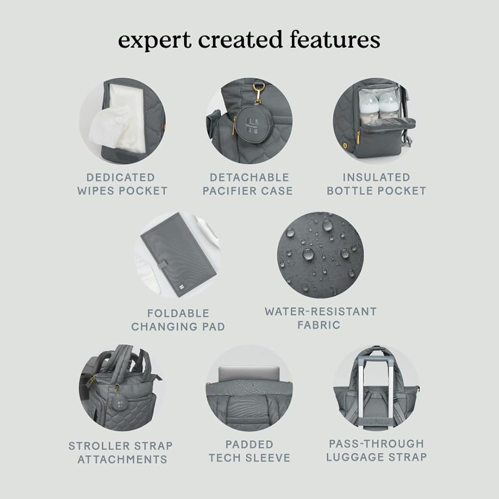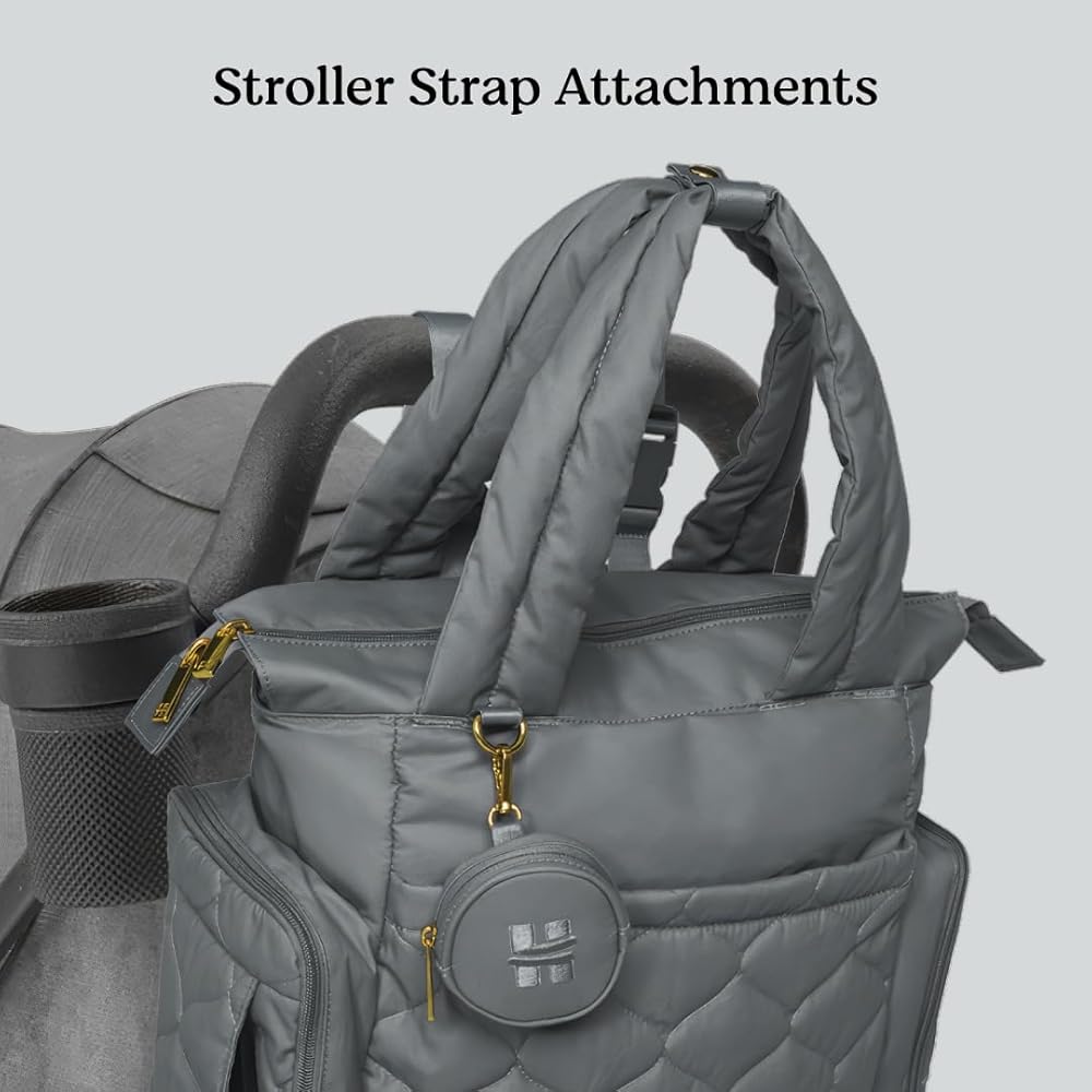 Introducing our most versatile diaper bag! Our Cozy Hugg Pack seamlessly transitions from a chic tote to a practical backpack, giving you unmatched versatility and style wherever you go, mama. Made from durable, water-resistant fabric with padded shoulder straps, it's ergonomic design make it perfect for long days out. It has a spacious main compartment to fit all of the essentials, while functional interior pockets keep you organized. Complete with a padded tech sleeve to keep your laptop or big sibling's tablet protected. With multiple interior compartments and pockets, you can hold smaller items like cards, cash and lip balm, while the key clip and adjustable stroller straps give you hands-free convenience while out and about! An insulated bottle pocket keeps bottles at the perfect temperature, and an exterior wipes pocket is always within reach to quickly clean up any mess. Wherever you go, we got you, baby!