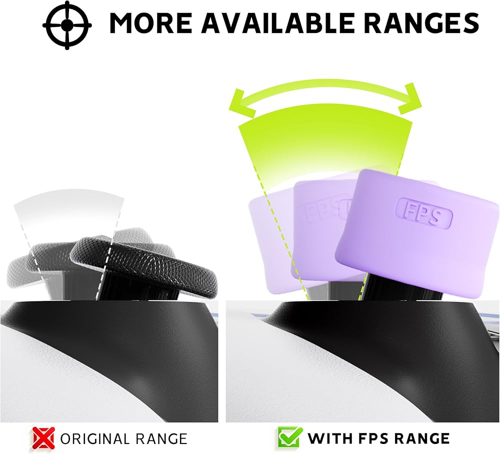 Our thumbgrip covers improve comfort and control by adding height and enhancing grip.This boost in range and sensitivity ensures more precise movements while keeping your thumb securely in place.The textured design not only prevents slipping but also fully protects your analog sticks from damage and wear.