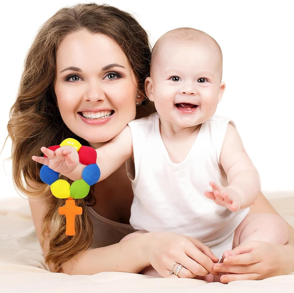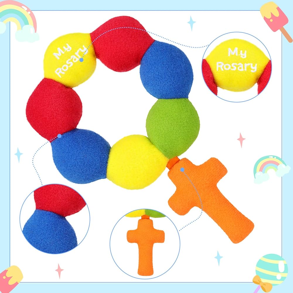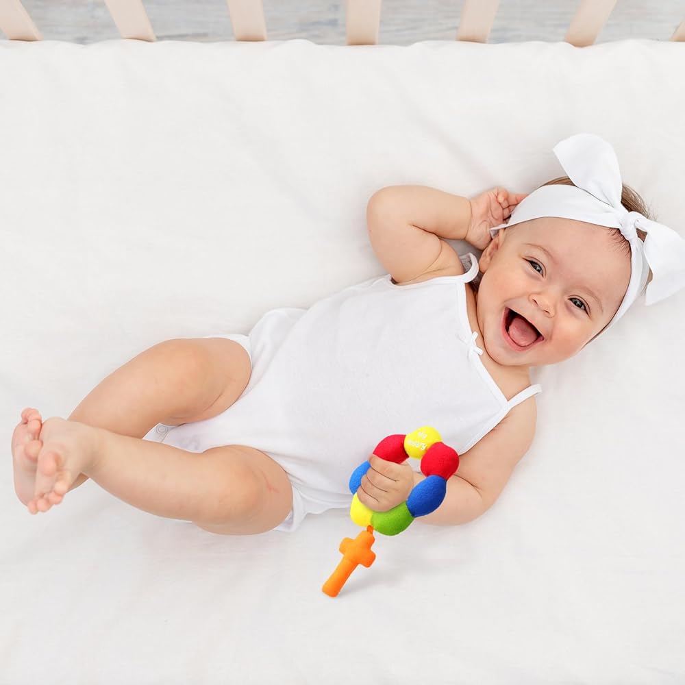 Soft Material for Delicate Skin: crafted from soft and plush materials, the plush baby rosary rattle is gentle on your baby's delicate skin; Designed with your baby's comfort in mind, ensuring they are always happy and content