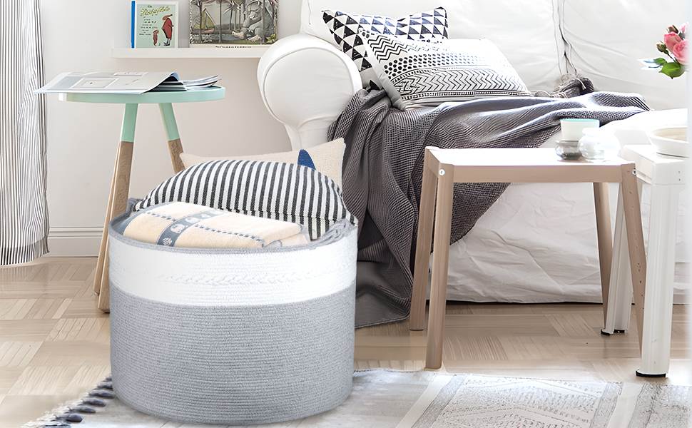 【خامة طبيعية فائقة】مصنوعة من القطن الطبيعي بنسبة 100%، وهي صديقة للبشرة. لذلك فهو مناسب للطفل. لن تسبب السلة الناعمة أي خدوش على أثاثك أو جدارك. إنه قابل للغسل، ولكن تجنب الجفاف.