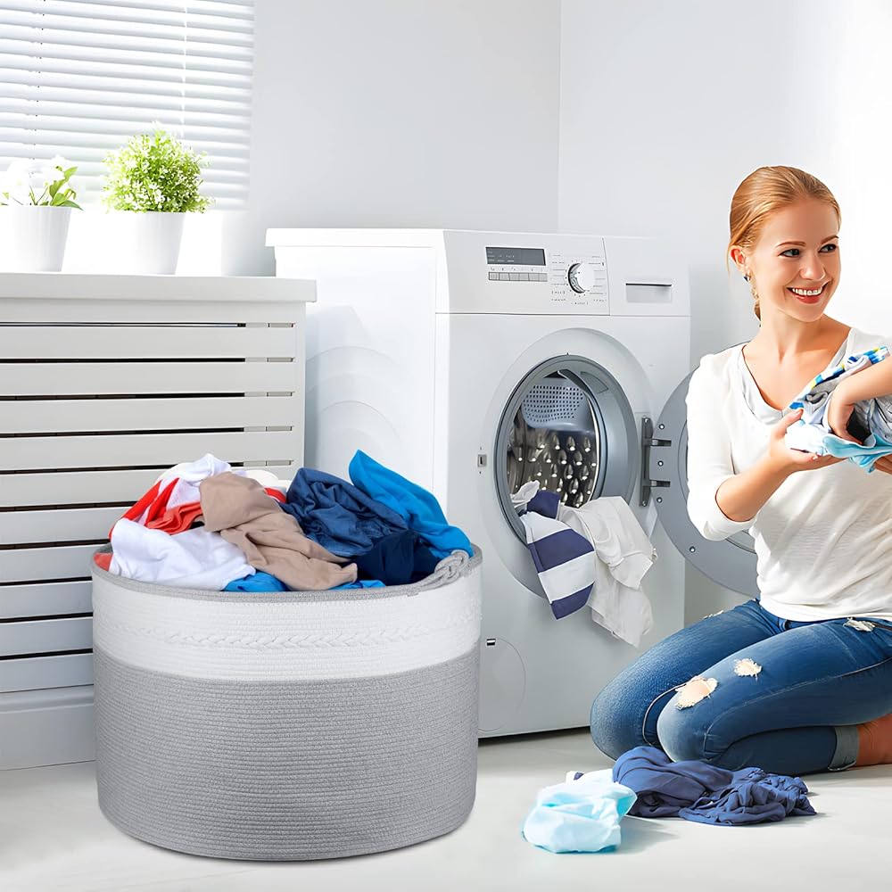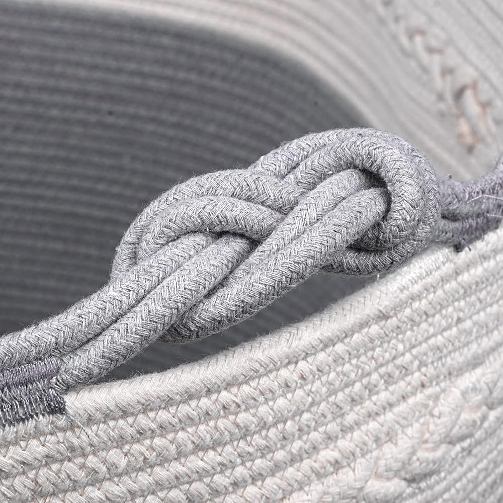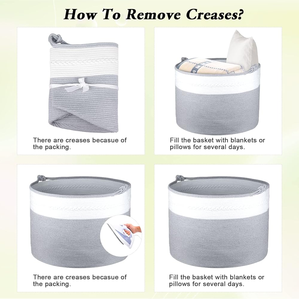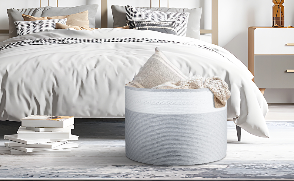 【سلة منسوجة متينة وقابلة للطي】مع مقابض معقودة مدمجة، يمكنك حمل العديد من العناصر دون أن تنكسر! يمكن طي سلة البطانية عند عدم استخدامها. إنه ناعم ولكنه متين للاستخدام طويل الأمد. هدية رائعة للعائلة لاستخدامها في التخزين، وهدية لطيفة لحديثي الولادة.