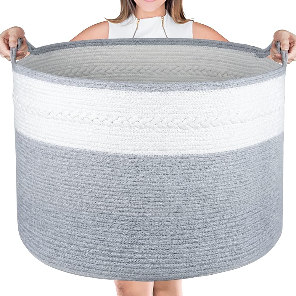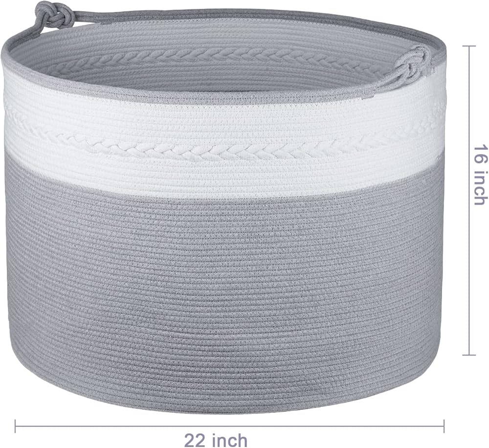【سلة عملاقة ومتعددة الاستخدامات】سلة تخزين كبيرة مقاس XXXXL (22 بوصة × 22 بوصة × 16 بوصة) للملابس والبطانيات والوسائد والمناشف والألحفة والكتب وسجادات اليوجا وألعاب الأطفال. يمكن أيضًا أن تكون سلة غسيل على الأقل ملابس قذرة لمدة أسبوع واحد.