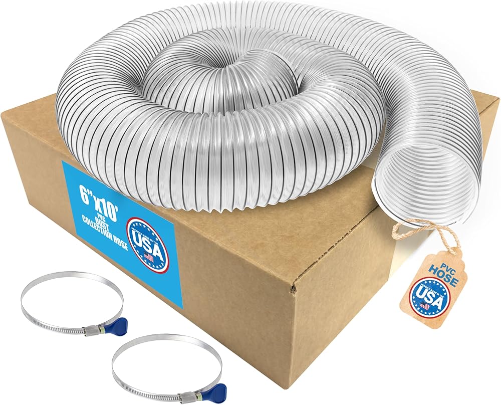 6 بوصات × 10 بوصات (قطر 6 بوصات وطول 10 أقدام) خرطوم جمع الغبار والحطام والأدخنة شديد التحمل من PVC - مصنوع في الولايات المتحدة الأمريكية! (خرطوم PVC مقاس 6 بوصات مع مشابك)