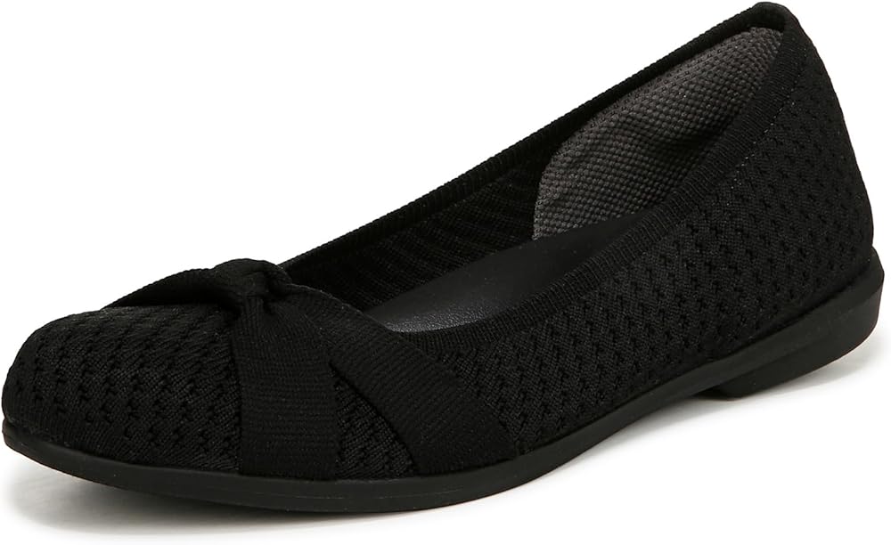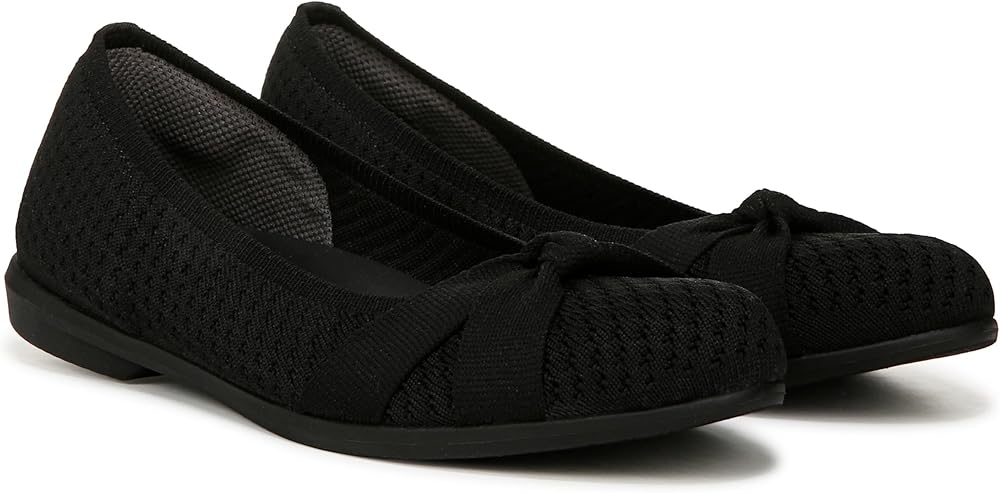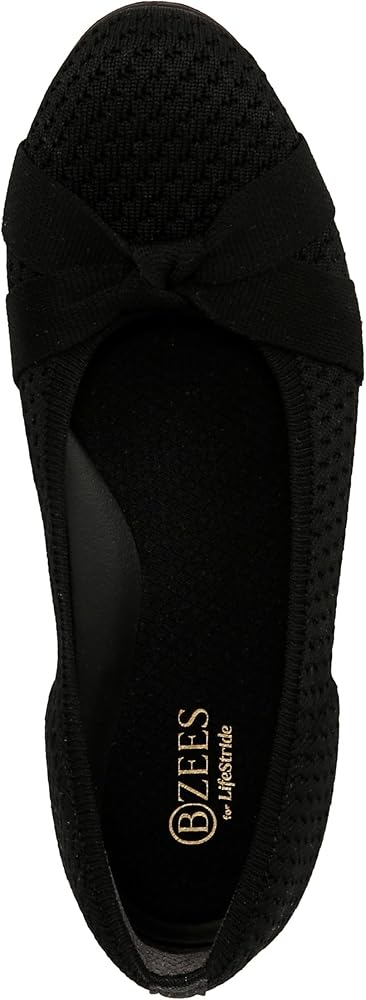 Flexible ballet flats tied together with a bow! So soft and lightweight, you'll never want to take these off. Stretch engineered knit upper with a round toe. BZEES Cloud Technology: Designed so you'll feel weightless, energized and free. Ultra Lightweight: Step lightly with a nearly weightless feel. Dynamic Stretch Fabrics: Move freely in shoes with built-in stretch. FreeFoam™ Comfort: Low pressure insoles with maximum foot contact and SoCush arch support. SoCush arch support. 1/2 inch heel. Get Width It: Countless pairs of Bzees come in wide width shoes for women. Machine Washable: Wash on cold and air dry.