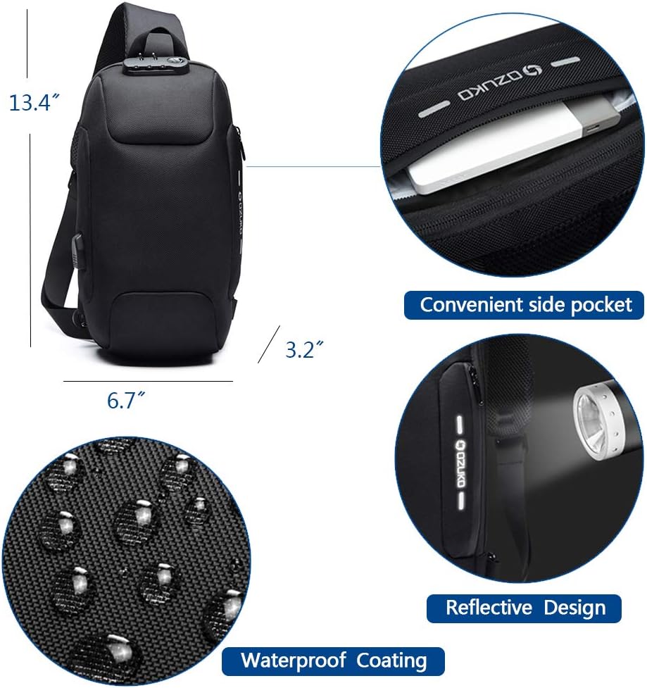 تصميم منفذ USB: مع شاحن USB مدمج بالخارج وكابل شحن مدمج بالداخل، توفر لك حقيبة الصدر هذه طريقة أكثر ملاءمة لشحن هاتفك أثناء المشي. يمكن تعديل حزام الكتف المتقاطع حسب الطول الذي تحتاجه.