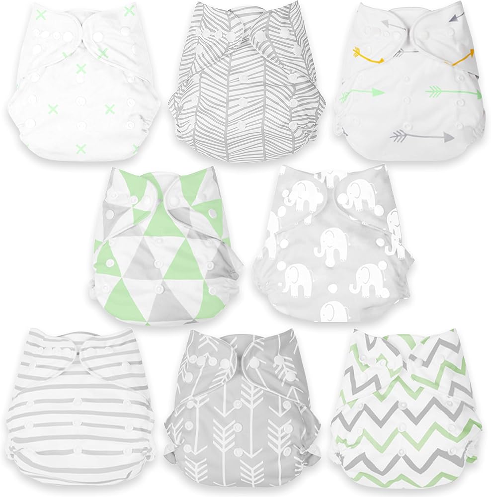 Set includes 8 x diapers, 8 x inserts;
