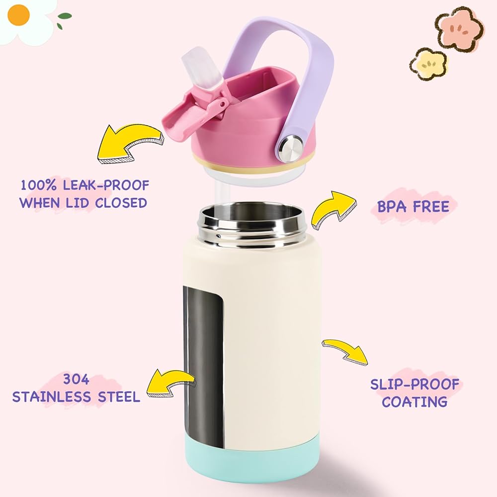 1. زجاجة معزولة للأطفال - زجاجة المياه المعزولة المصنوعة من الفولاذ المقاوم للصدأ والمصممة للأطفال، تحافظ على السوائل ساخنة لمدة 12 ساعة وباردة لمدة 24 ساعة. زجاجة المياه المعزولة لدينا مصنوعة من الفولاذ المقاوم للصدأ 304، وخالية من مادة BPA والرصاص وPAES.