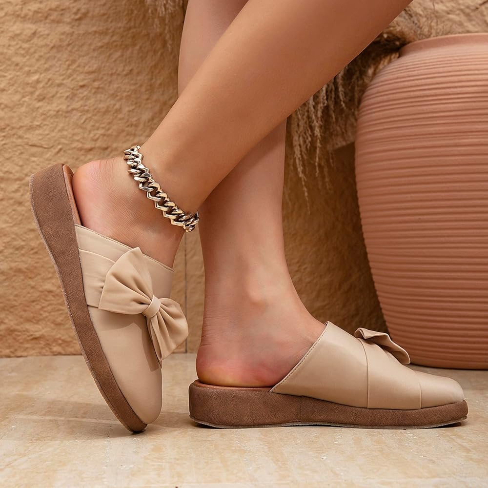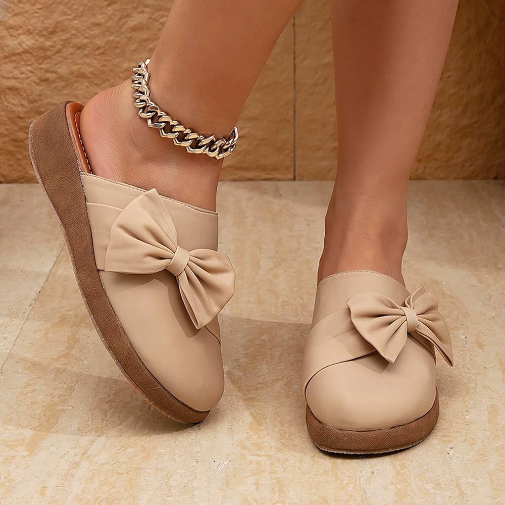 【صنادل بفيونكة عصرية】تضفي لمسة القوس الأنيقة والرقيقة لمسة ساحرة على الصندل، مما يعزز أسلوبك دون عناء. يوفر التصميم الدائري الأنيق لأصابع القدم مساحة مناسبة للقدم، مما يجعلك تشعر بالثقة في كل خطوة.
