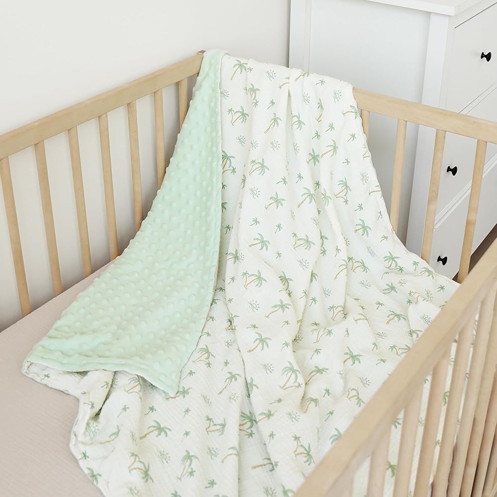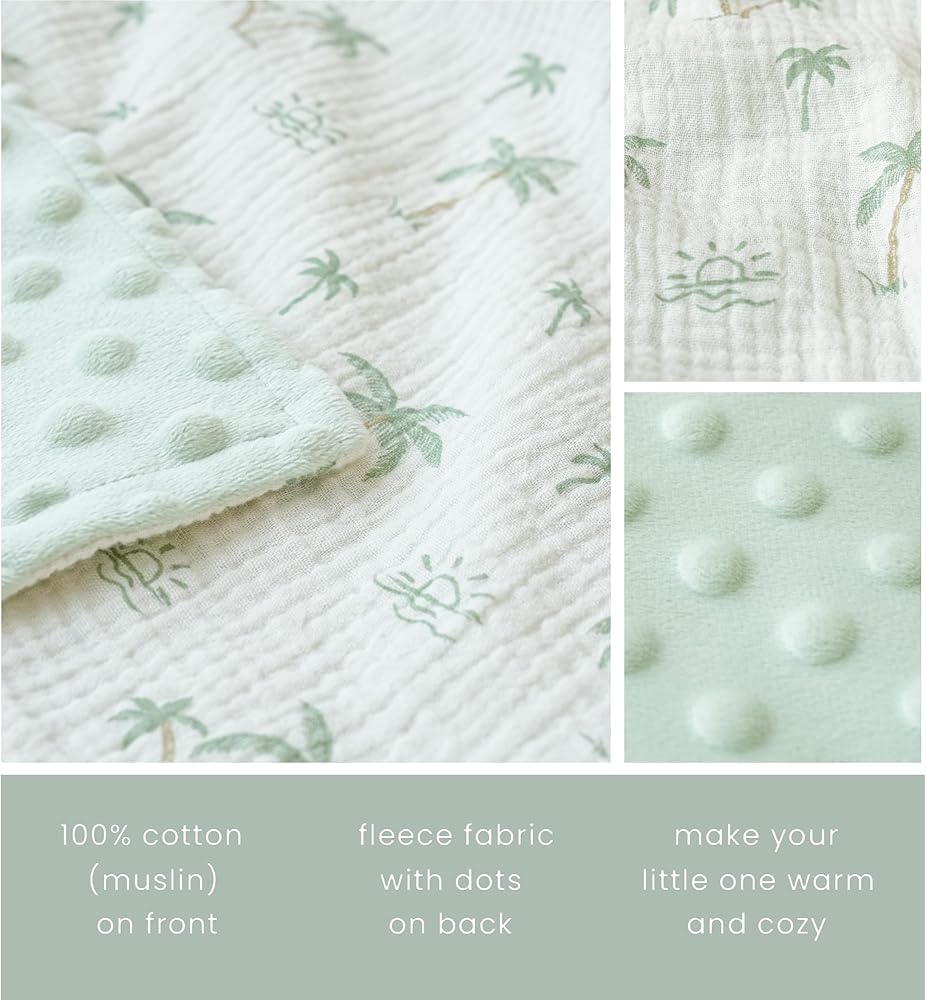 Soft fabric: Our baby blankets for girls are made of 100% cotton(Muslin) on the front and ultra soft dot fleece fabric on the back. It is warm, long-lasting, skin-friendly, double-layer with soft dot-shaped fleece back. Our muslin swaddles are soft and gentle on your little loves' skin, and suitable for all climates