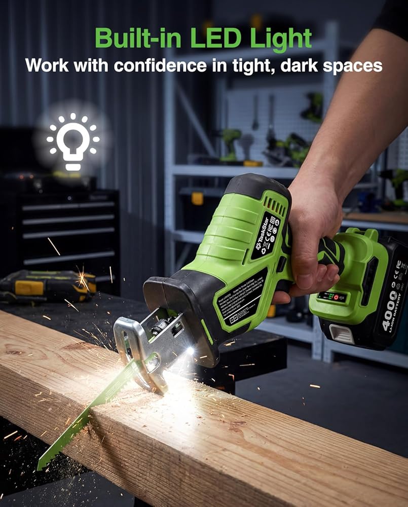 خفيف الوزن وسهل الاستخدام: يزن هذا المنشار الترددي اللاسلكي 4.40 رطل فقط، وهو مثالي للمستخدمين غير المحترفين الذين يبحثون عن أداة سهلة الاستخدام. يوفر المنشار الترددي بديلاً خفيف الوزن للمناشير الضخمة أو الأدوات السلكية، مما يسمح بالتشغيل السهل وتعزيز القدرة على المناورة.