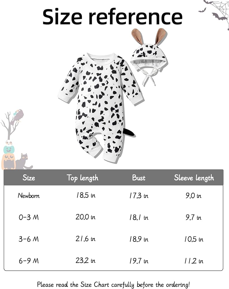 مناسبة لـ: ملابس الأولاد حديثي الولادة؛ زي الهالوين الأول للأطفال الرضع؛ ملابس الأطفال الرضع 0-3 أشهر؛ ملابس للأولاد من عمر 3 إلى 6 أشهر؛ ملابس للأولاد من 6 إلى 9 أشهر. يرجى الرجوع إلى جدول المقاسات لاختيار المقاس المناسب لطفلك.