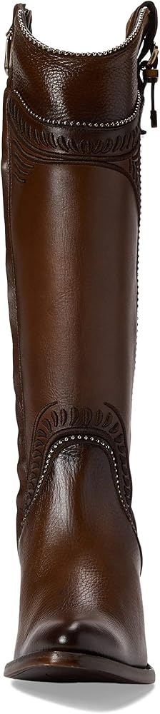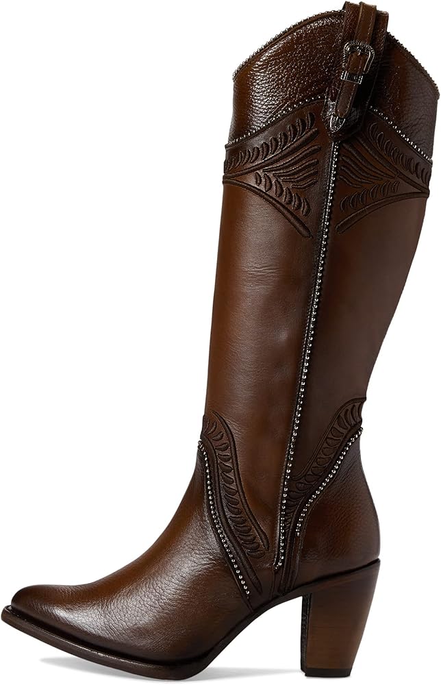 Add a fine touch of style to your outfits wearing Cuadra CU583 Boots. Leather upper. Leather lining and insole. Knee-high boots. Zipper closure. Curved top. Pull straps. Design on shaft and around ankle. Block heel. Pointed toe. Leathe rand rubber outsole.