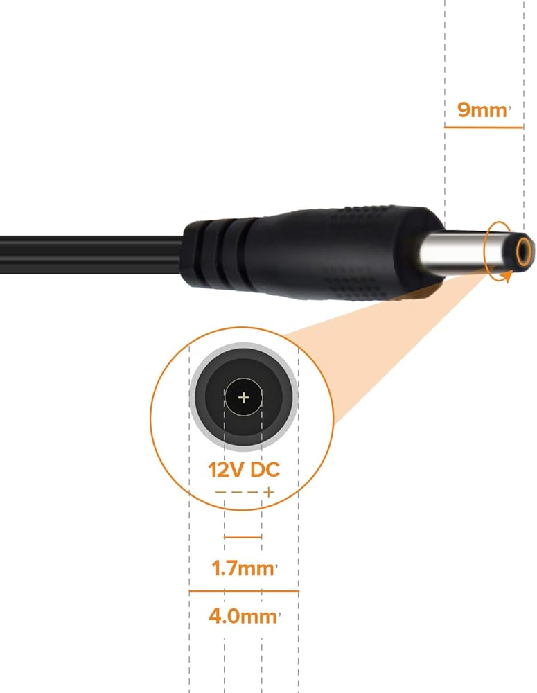 - كابل طاقة تيار مستمر 6.56 قدم/2 متر 12 فولت مع موصلات بأسمائها الحقيقية