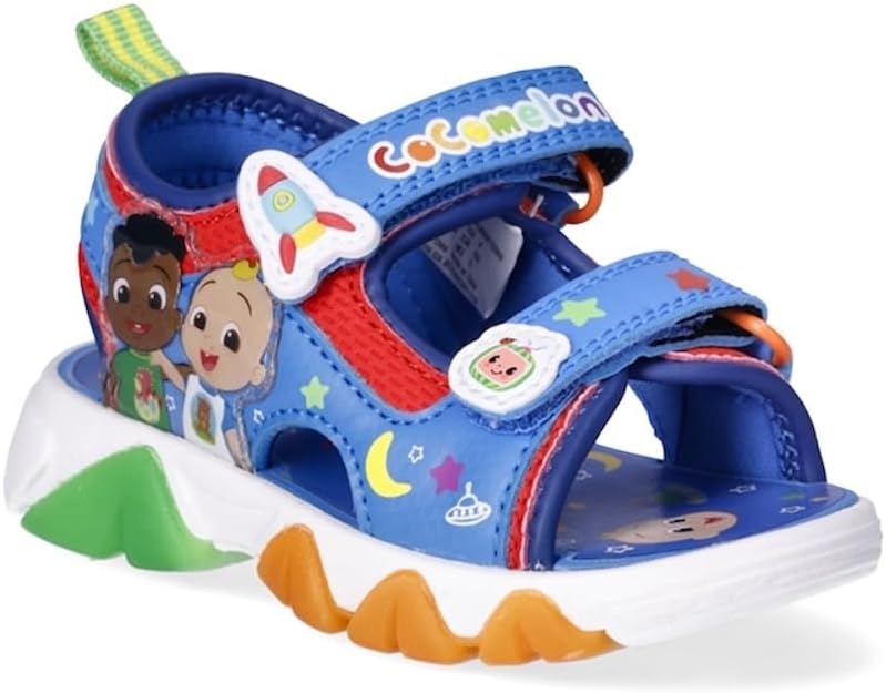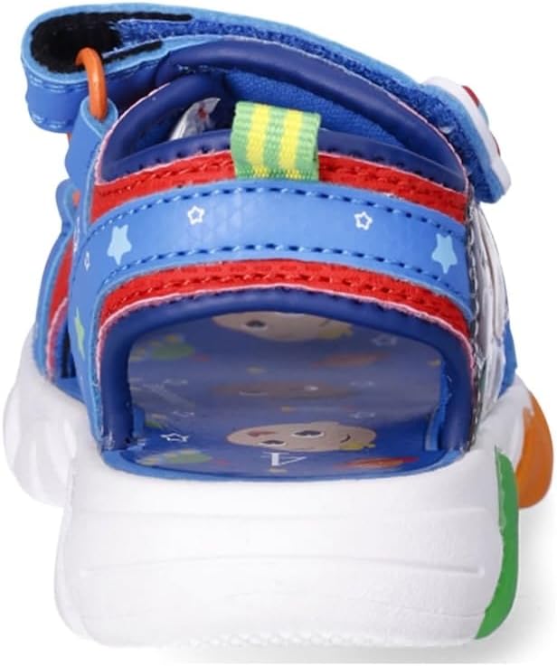 Your little one is going to love these adorable sandals featuring his favorite Cocomelon characters, best friends JJ and Cody. The easy-to-clean synthetic upper features fun character art, as does the footbed. The easy-on/easy-off design features dual adjustable hook-and-loop straps for a secure fit, with micro-injected artwork of icons from the show. A durable white outsole with orange and green accents completes the look.