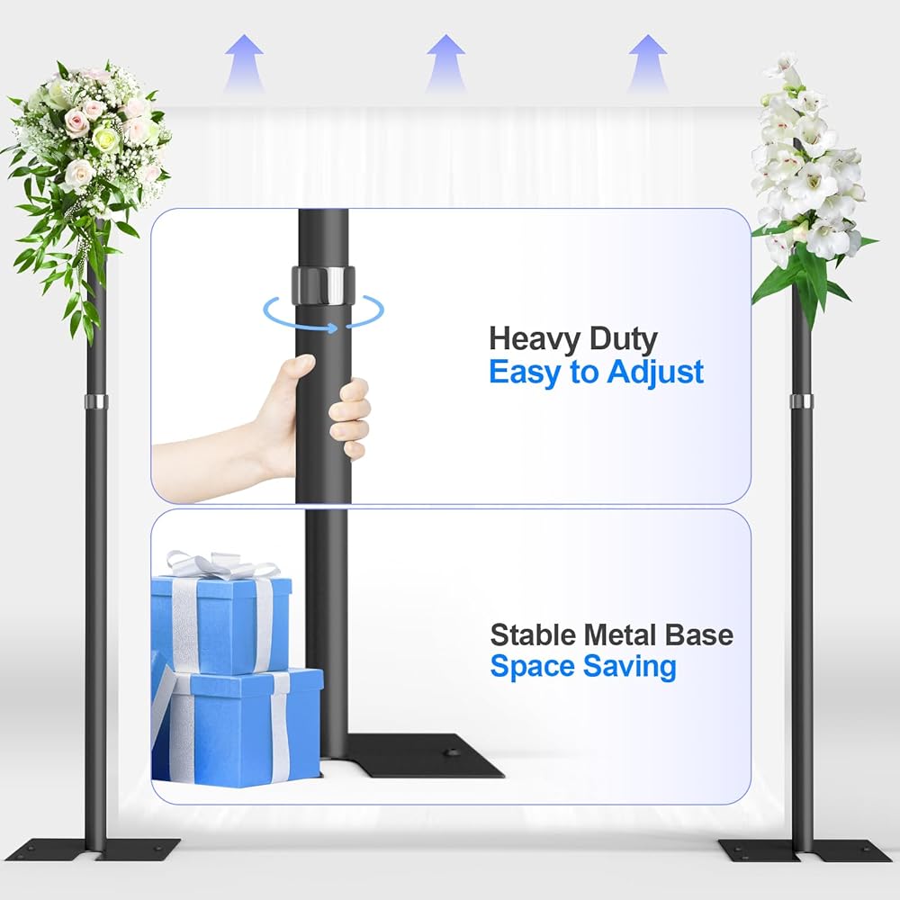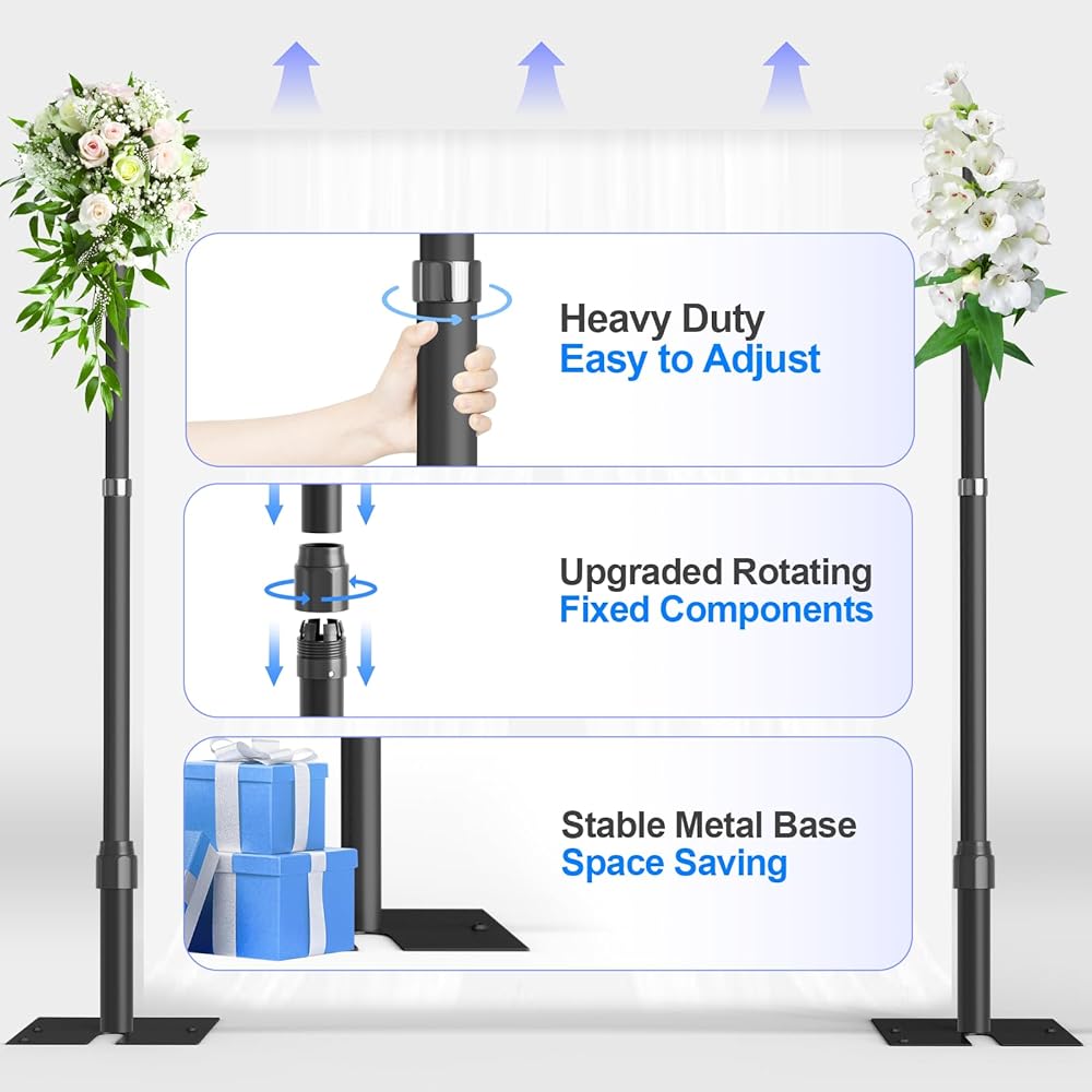 • 【مجموعة دعم خلفية متعددة الاستخدامات】يمكن لمجموعة حامل الخلفية للأنابيب والستائر تعليق الستائر والبالونات وأضواء الخيط والزهور وغيرها من الديكورات. مناسبة لحفلات الزفاف، والحفلات، وأعياد الميلاد، وحفلات استقبال الأطفال، والتصوير الفوتوغرافي، وأكشاك الصور، وخلفيات حامل اللافتات، وأحداث العمل وما إلى ذلك.