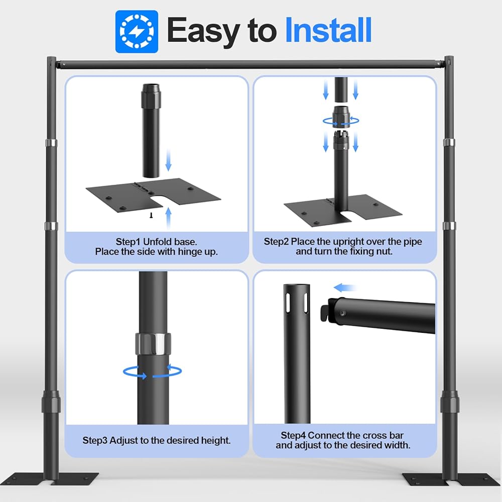 طقم حامل خلفية للأنابيب والستائر، خلفية شديدة التحمل مقاس 10أقدام × 10أقدام، حامل خلفية قابل للتعديل للتصوير الفوتوغرافي وحفلات الزفاف والحفلات وتزيين الأحداث - أسود