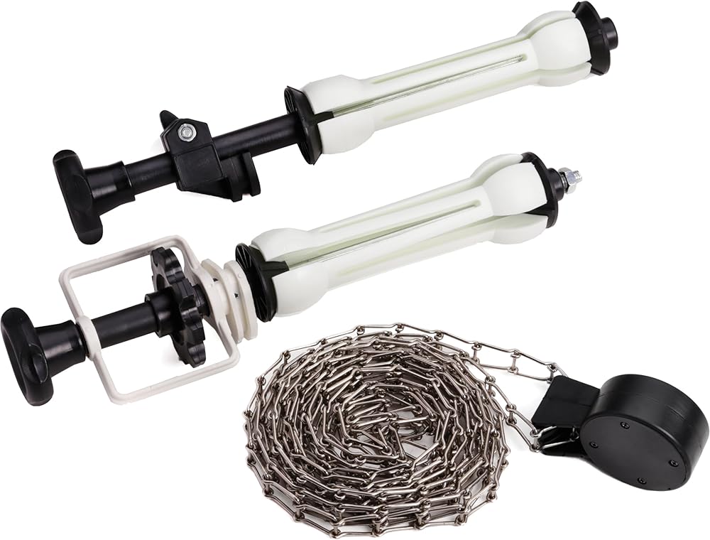 The Impact VPD-DSMC2 Varidrive Set makes it easy to raise and lower seamless background paper rolls. The set includes expandable Varidrive cores that grip the paper roll's inner tube and allow you to change your backgrounds with a simple pull of the chain. For ease of operating multiple backgrounds, Varidrive sets come with a selection of red, gray, black, and silver chains to quickly identify the appropriate background. Built with features like a large-tooth gear wheel and flat metal chain, the Varidrive set is easy to install and can be used with paper rolls up to 12 feet wide and weighing up to 42 pounds. The Varidrive set can be suspended from a variety of accessory hooks. Use Impact VariPoles and Triple Background Hooks with Super Clamps to suspend backgrounds in areas with extremely tall ceilings. You can also use the Varidrive set with Impact's Cross Pole to expand compatibility with uncored paper rolls and fabric backgrounds.