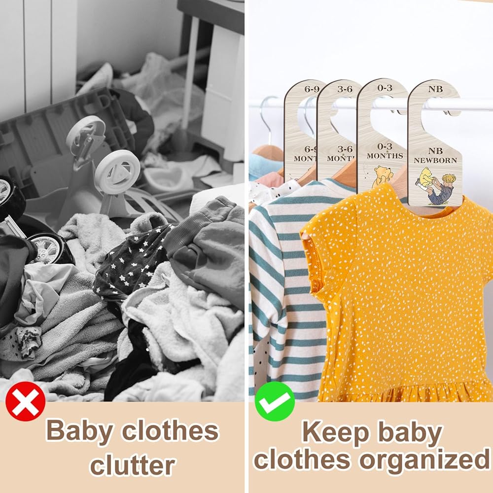 High-quality Material: This baby closet dividers is made of high-quality wood board with clear printing and can be reused. Each baby dividers sign measures approximately 3.1*7.1inches.
