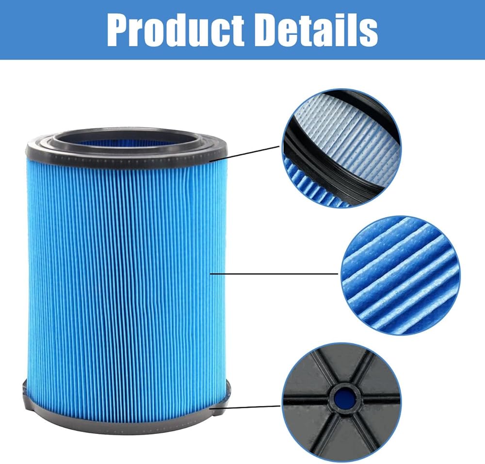 -The vacuum filter is highly efficient, capturing 99.97% of particles down to 0.3 microns. It effectively traps fine dirt, pollen, sawdust, pet dander, wood chips, and car dirt, ensuring thorough cleaning and maintaining a clean environment.