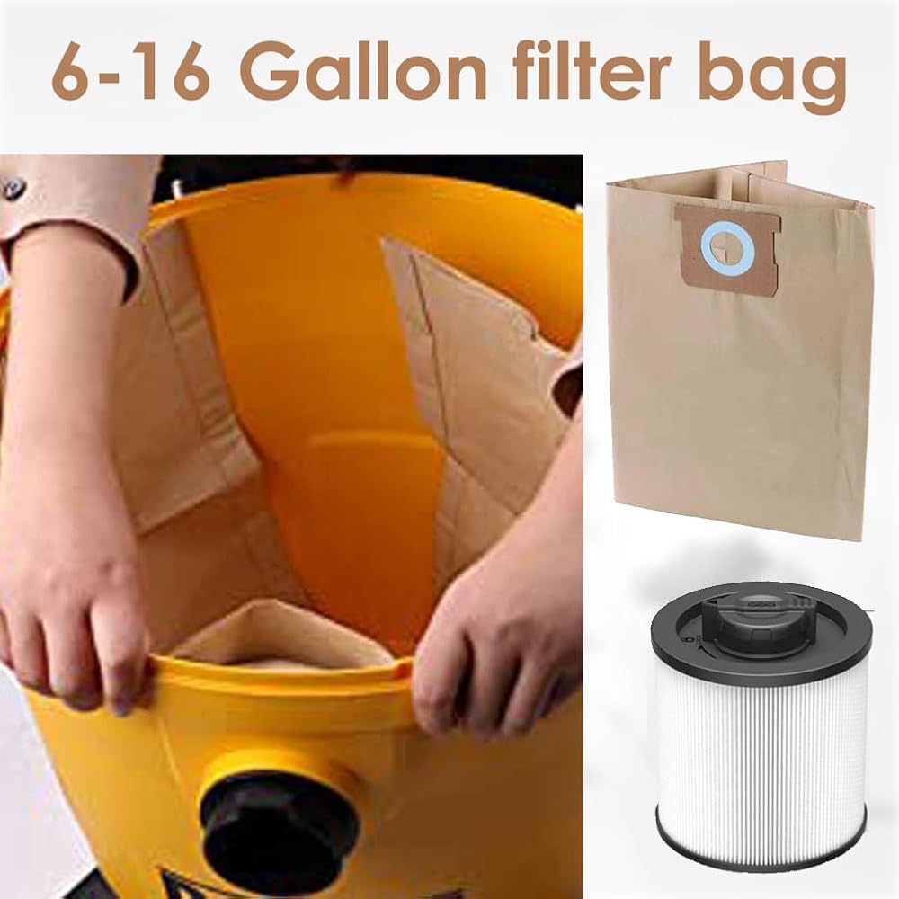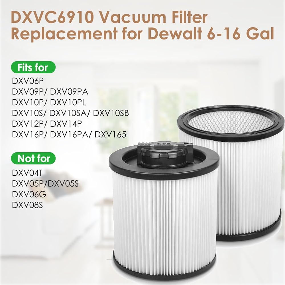 توافق واسع: يناسب فلتر المكنسة الكهربائية DXVC6910 مكانس DeWalt الرطبة/الجافة بسعة 6-16 جالون، بما في ذلك DXV06P، DXV09P، DXV09PA، DXV10P، DXV10PL، DXV10S، DXV10SA، DXV10SB، DXV12P، DXV14P، DXV16P، DXV16PA، DX V16S. تأكد من التوافق قبل الشراء.