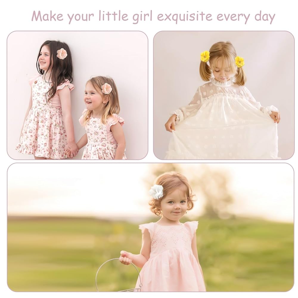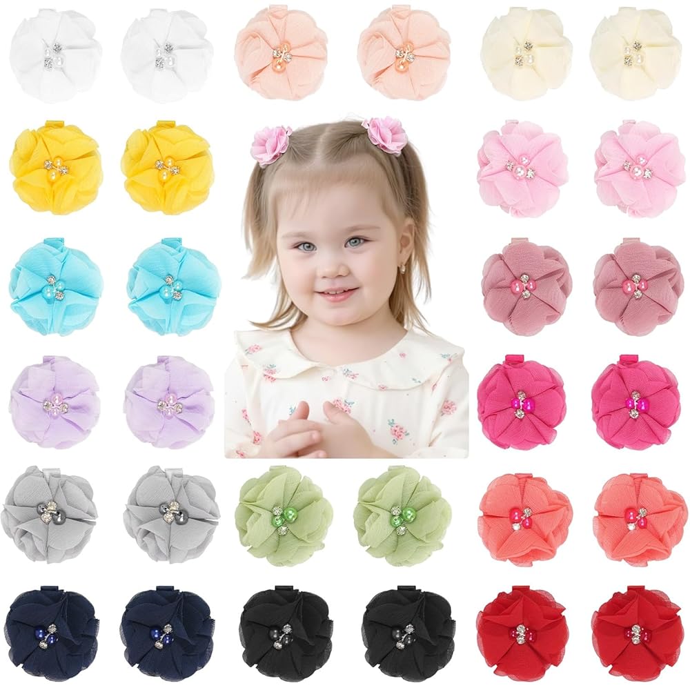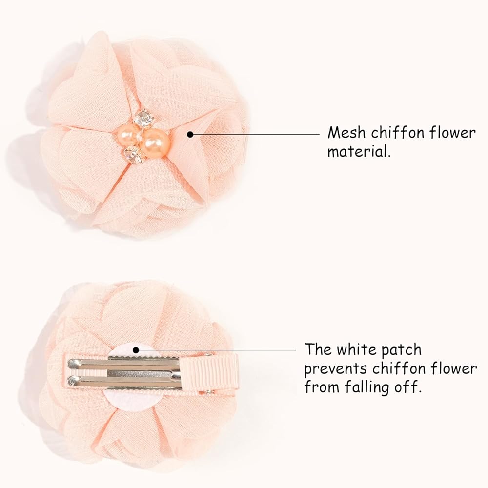 تشمل العبوة: 24 قطعة من مشابك الشعر على شكل زهرة شيفون. مشابك شعر رائعة مصممة بشكل أنيق وفريد للفتيات الصغيرات.