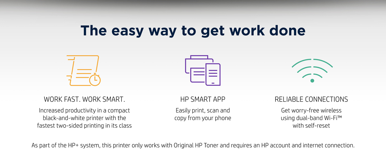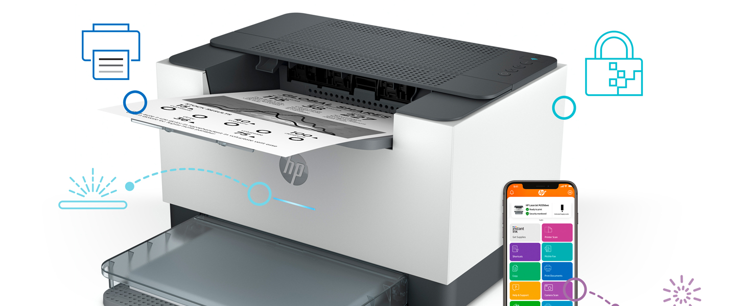 With fast print speeds and precision two-sided printing, the HP LaserJet M209dwe is perfect for small businesses printing black & white forms, reports and business documents. It includes the HP+ Smart Printing System that keeps itself up to date, secure, and ready to print from virtually anywhere at any time.