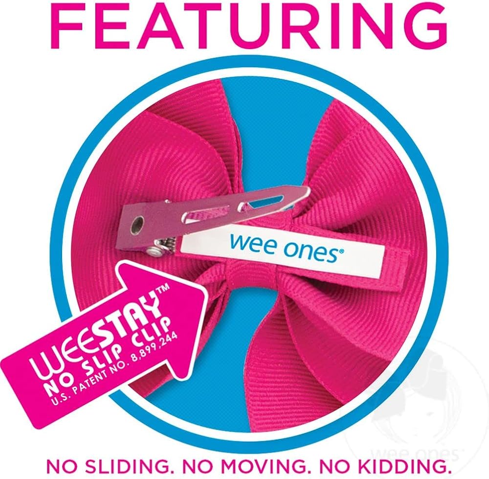 جودة. يقوم صانعو القوس لدينا بربط اليد والتحقق بعناية من جودة كل ملحق للتأكد من أن كل منتج من منتجات Wee Ones مناسب تمامًا. مشبك WeeStay No Slip الحاصل على براءة اختراع يحافظ على الأقواس في مكانها طوال اليوم - لا يبقى القوس في مكانه بشكل أفضل!