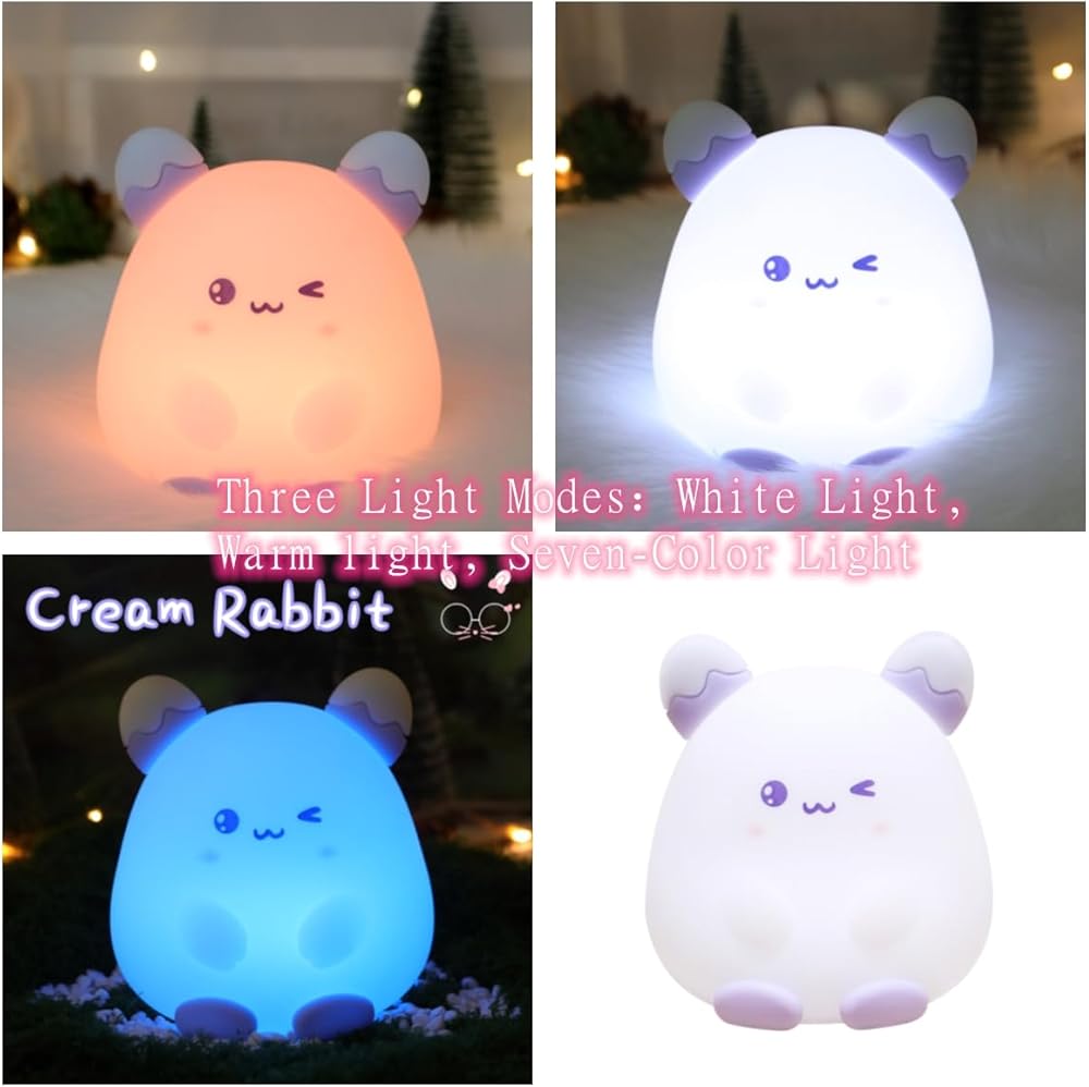 【إضاءة أرنب قابلة لإعادة الشحن】- بطارية مدمجة قابلة لإعادة الشحن بقدرة 1200 مللي أمبير في الساعة تجعل الضوء الليلي اللطيف يدوم لساعات ويمكن إعادة شحنها في أي وقت باستخدام كابل USB.