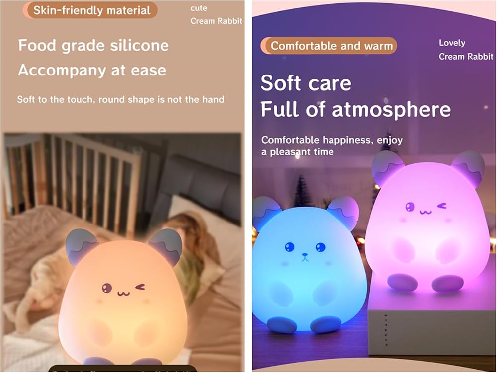 【مصباح آمن للأطفال】- مصباح للرضاعة الطبيعية للأطفال، يكفي لإنتاج ضوء متلألئ ولكن ليس ساطعًا جدًا أو عمياء، مناسب لغرفة الأطفال/غرفة الأطفال، وهو رفيق جيد للأطفال الصغار الذين يخافون من الظلام! مصنوعة من مادة أكريلونتريل بوتادين ستايرين والسيليكون عالية الجودة وخالية من البيسفينول، آمنة للأطفال، سهلة المسح، لمسة ناعمة ساحرة مثل العيون الكبيرة اللطيفة، اضغط على الجسم الناعم، للاسترخاء والتخلص من التوتر!