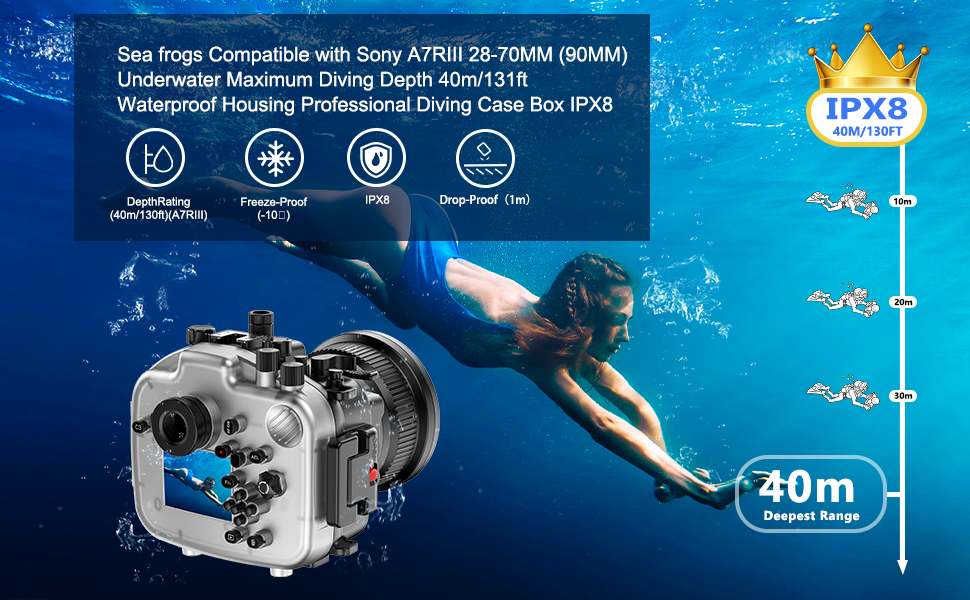 • · 【 التوافق 】 يناسب غطاء التصوير الفوتوغرافي تحت الماء هذا هاتف Sony A7RIII. إنها أفضل هدية لعشاق الهواء الطلق.