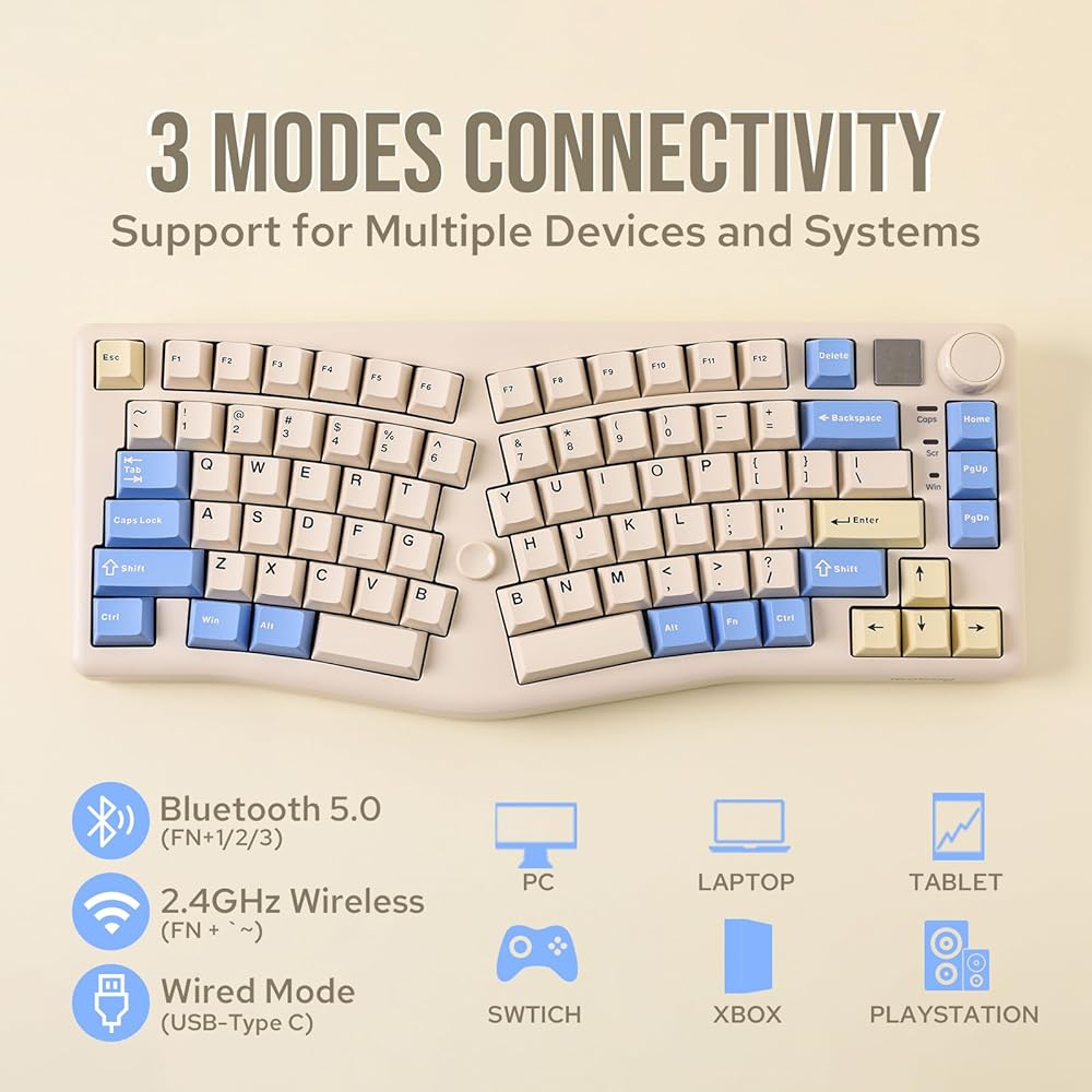 【اتصال ثلاثي الأوضاع وبطارية 4000 مللي أمبير في الساعة 】 يدعم بلوتوث 5.0، 2.4 جيجا هرتز لاسلكي، ووصلات سلكية USB من النوع C، يوفر LEOBOG A75 اتصالاً متعدد الاستخدامات وسلسًا يصل إلى 10 أمتار. وتضمن بطاريته القوية التي تبلغ سعتها 4000 مللي أمبير في الساعة أداءً فعالاً للمهام المتعددة وأداءً مستدامًا عبر جميع أوضاع الاتصال الثلاثة، مما يجعله مثاليًا للعمل واللعب.
