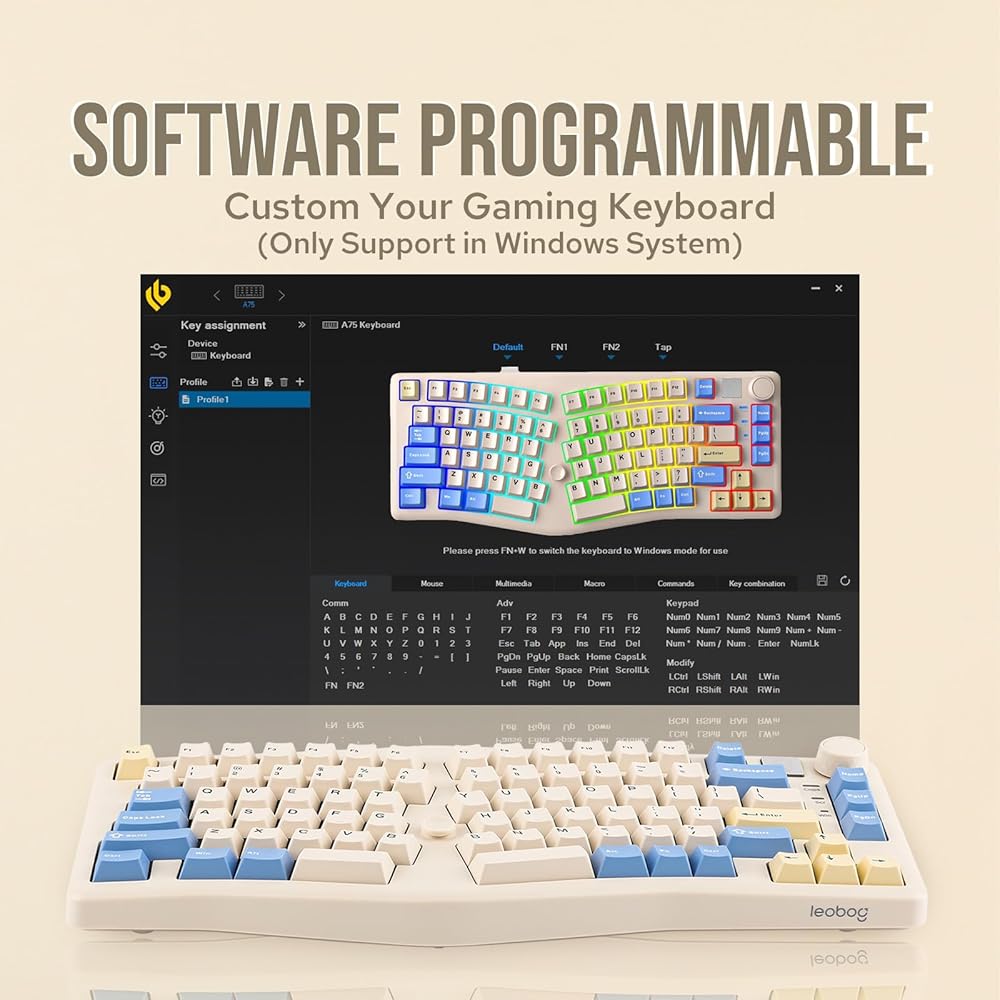 【تخطيط أليس مع مقبض】 يتميز LEOBOG A75 بتصميم أليس مع صف الوظائف، مصمم لتوفير وضع طبيعي ومريح لليد والأصابع لتجربة كتابة أكثر راحة. يُفضل هذا التصميم كل من المستخدمين العاديين وعشاق لوحة المفاتيح نظرًا لفوائده المريحة، خاصة أثناء جلسات الكتابة الطويلة. تحتوي الزاوية اليمنى العلوية على مقبض متعدد الوظائف لضبط مستوى الصوت وسطوع RGB (اضغط لفترة طويلة للتبديل بين وظيفتين)، والذي يمكن تخصيصه حسب تفضيلاتك باستخدام برنامج تشغيل LEOBOG. إنه يوفر صوتًا مرضيًا وردود فعل ملموسة عند تشغيله.