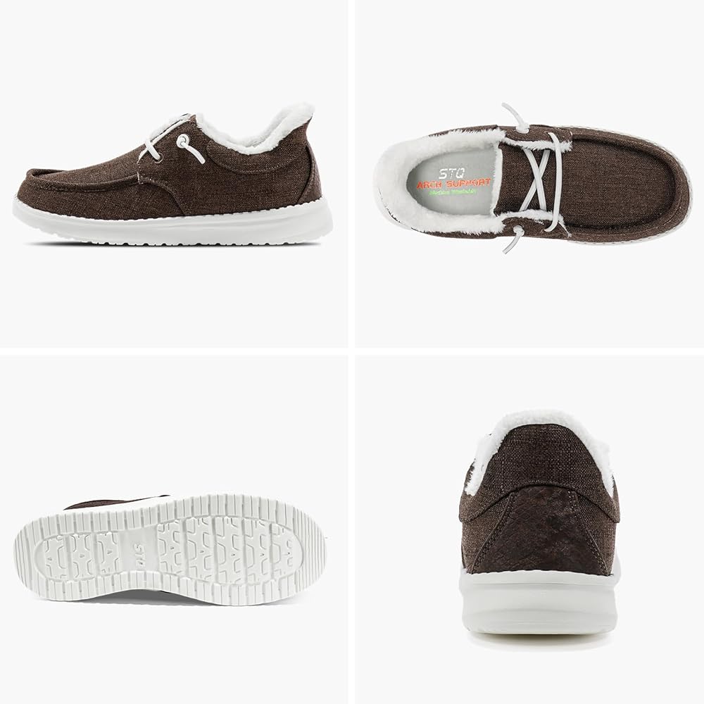 Why Choose STQ's fall winter Women's Lace up Loafers? Our slip on boat shoes perfectly blend comfort, style, and functionality. 1. No need for bending or extra effort - just Ease in for instant comfort and style. Make every step easy! 2.Women's canvas shoes with removable arch support insoles for improved foot comfort. 3. These hands free shoes distribute weight evenly, realign your body, and reduce foot pressure. Perfect for long walks or standing and for conditions like plantar fasciitis, flat feet, pronation, bunions, and arthritis. 4. Step confidently in our orthopedic sneakers with ultra-light, resilient outsoles. Tested through thousands of flex trials, they blend durability with feather-light comfort, offering freedom of movement without sacrificing long-lasting wear. 5. These non slip slipper loafers seamlessly transition from formal events to casual outings, making them ideal for business, travel, or leisure. With convenient slip ins, they're perfect for expectant mothers or quick shoe changes—a stylish and functional gift for any occasion. About Our Brand STQ Brand aims to create the most comfortable, lightweight, flexible footwear from a premium line of casual comfort products in stylish and sophisticated silhouettes, to Lifestyle Classics with a preppy sport influence. Our quality control team oversees every parts of the manufacturing process. STQ Shoes are boast excellent durability and construction you can trust!