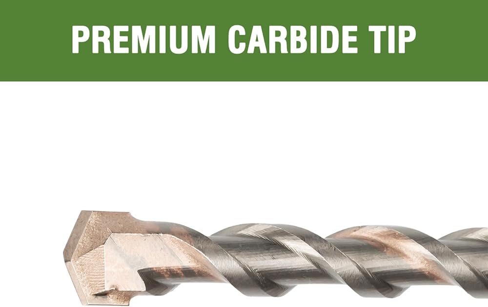 Longer Life - 5/8” concrete drill bit with premium head tungsten carbide tips, for up to 5x longer life in concrete, cinder block or brick, stone, rock and other masonry material