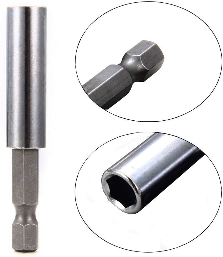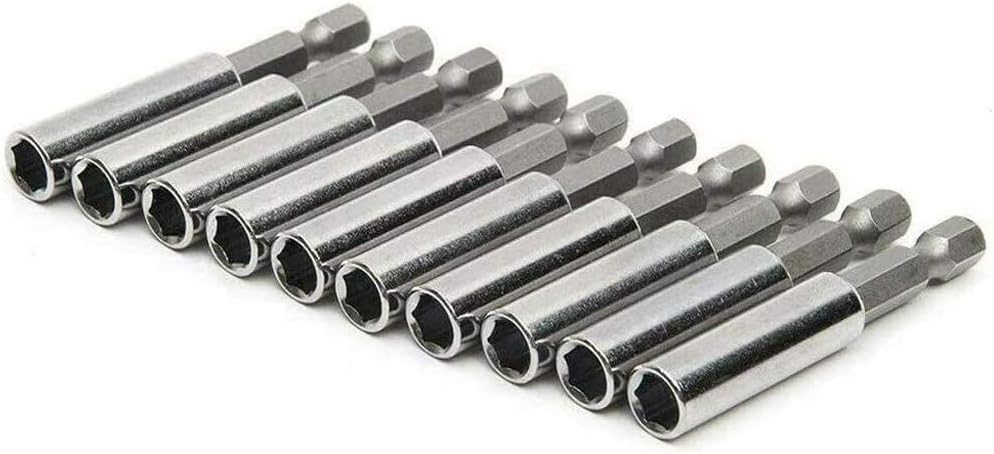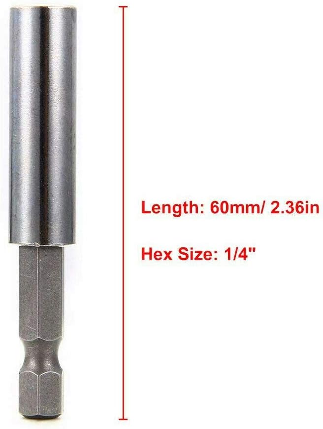 Specifications: --Material: Carbon Steel & Chrome Vanadium Steel --Hex Size: 1/4"(6.35mm) --Length: 60mm --Hex Size: 1/4"(6.35mm) --Suitable for: Automotive, Hardware, Hobby, Home, etc. Package includes: 10 X Magnetic Extension Sockets