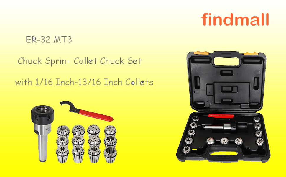 Findmall 14 قطعة ER-32 MT3 Chuck Spring Collet Chuck مجموعة مع مجموعة 1/16 بوصة - 13/16 بوصة وصندوق مناسب لآلة النقش CNC وأداة مخرطة الطحن